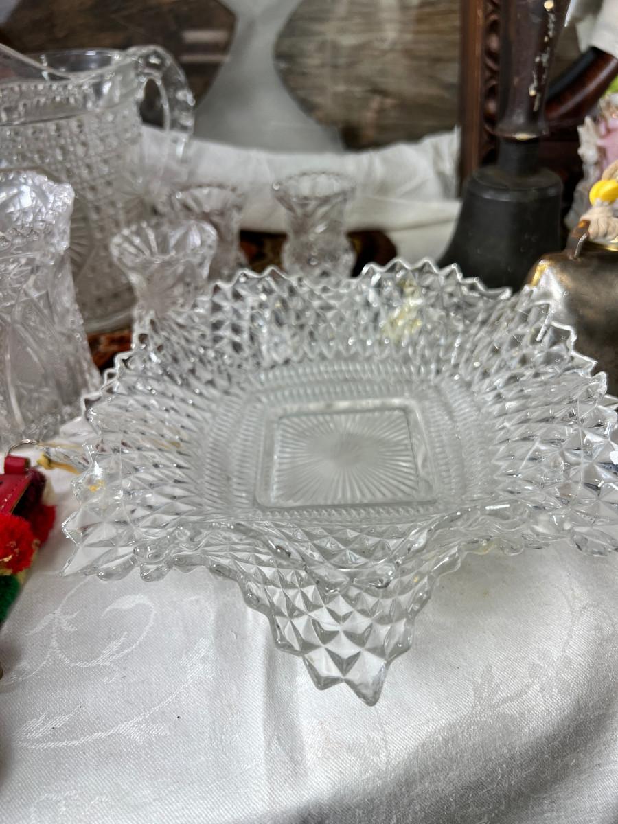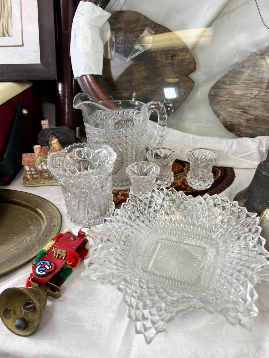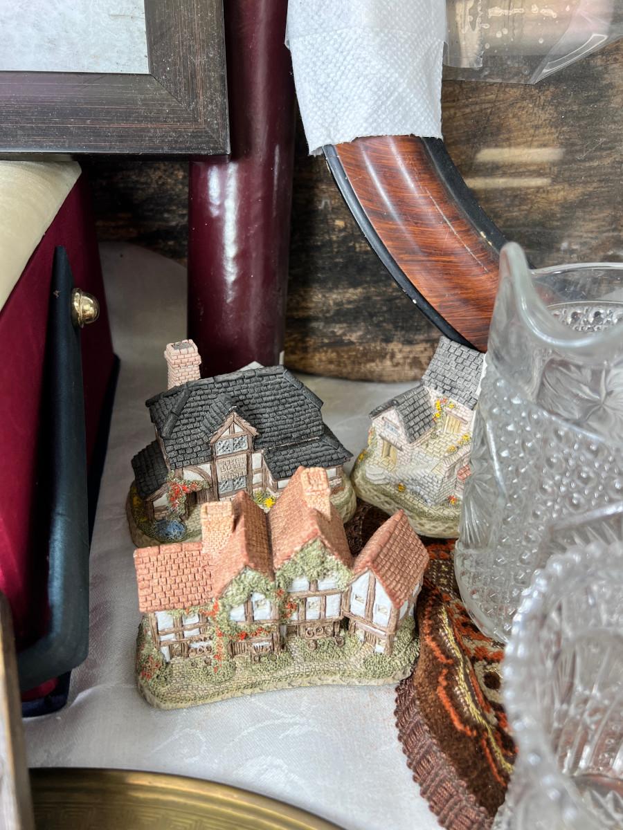 Vintage glass ware, jewelry box, Figurines. David Winter resin cottage. No shipping