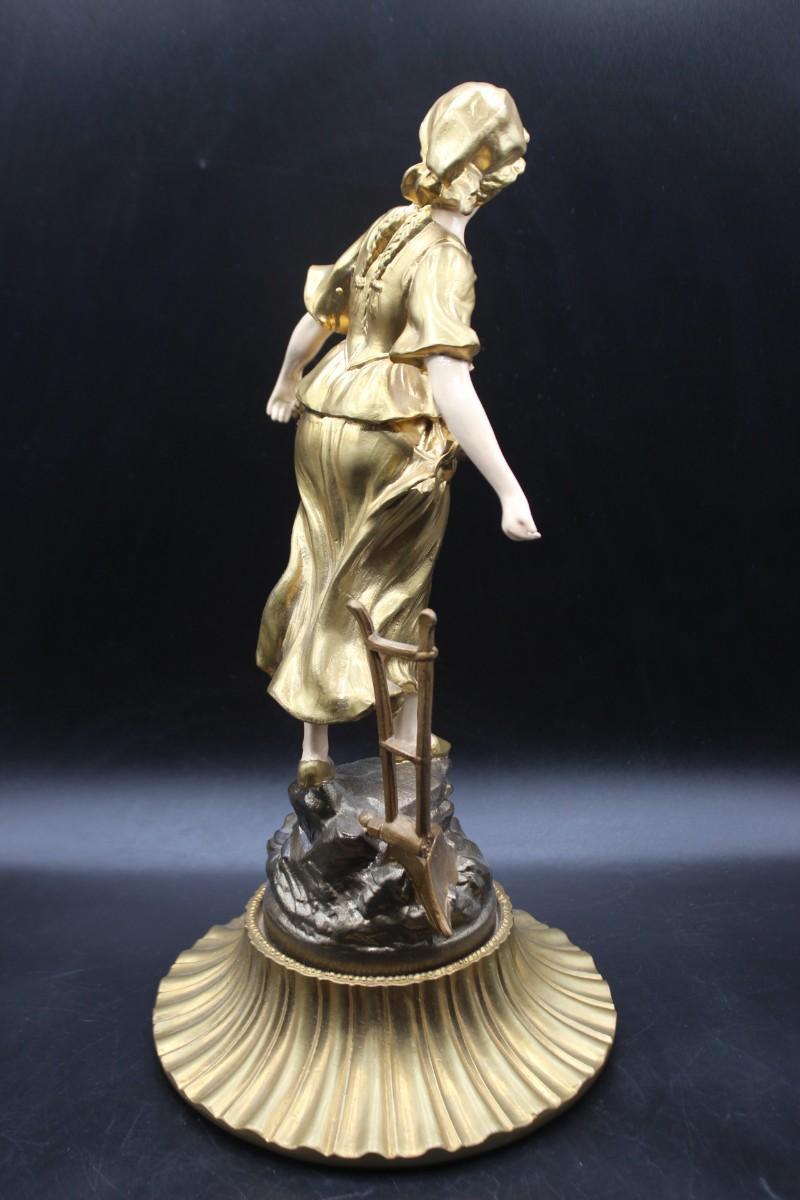 Antique Francaise Peasant Farmer French Bronze Metal Statue