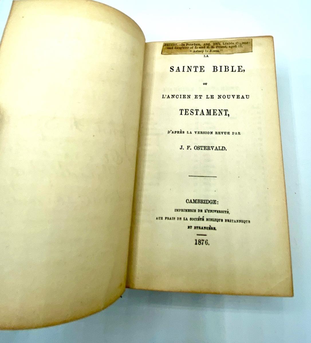 Antique French 1876 Bible SANTE BIBLE Inscribed John A. Squire
