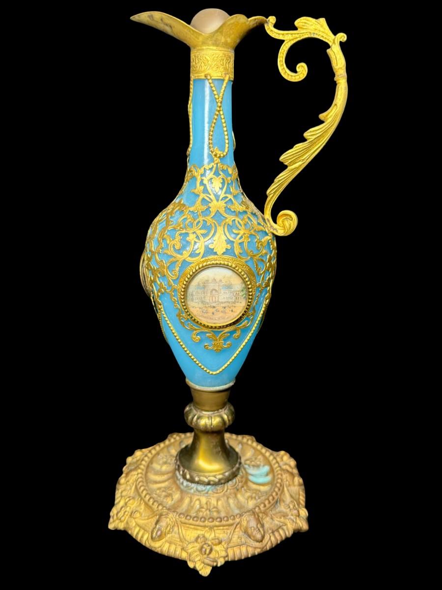 Antique French Blue Opaline Glass Scent Bottle