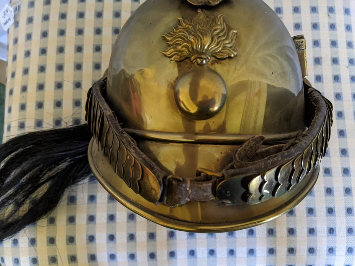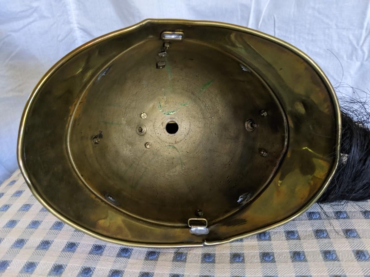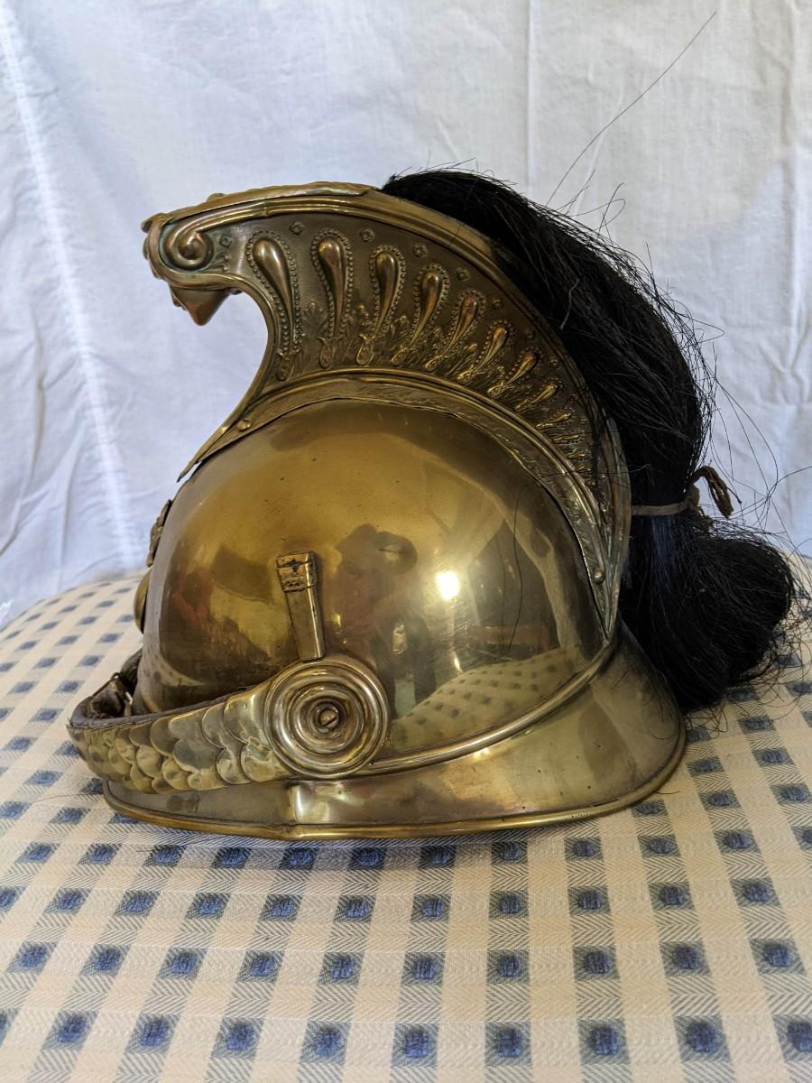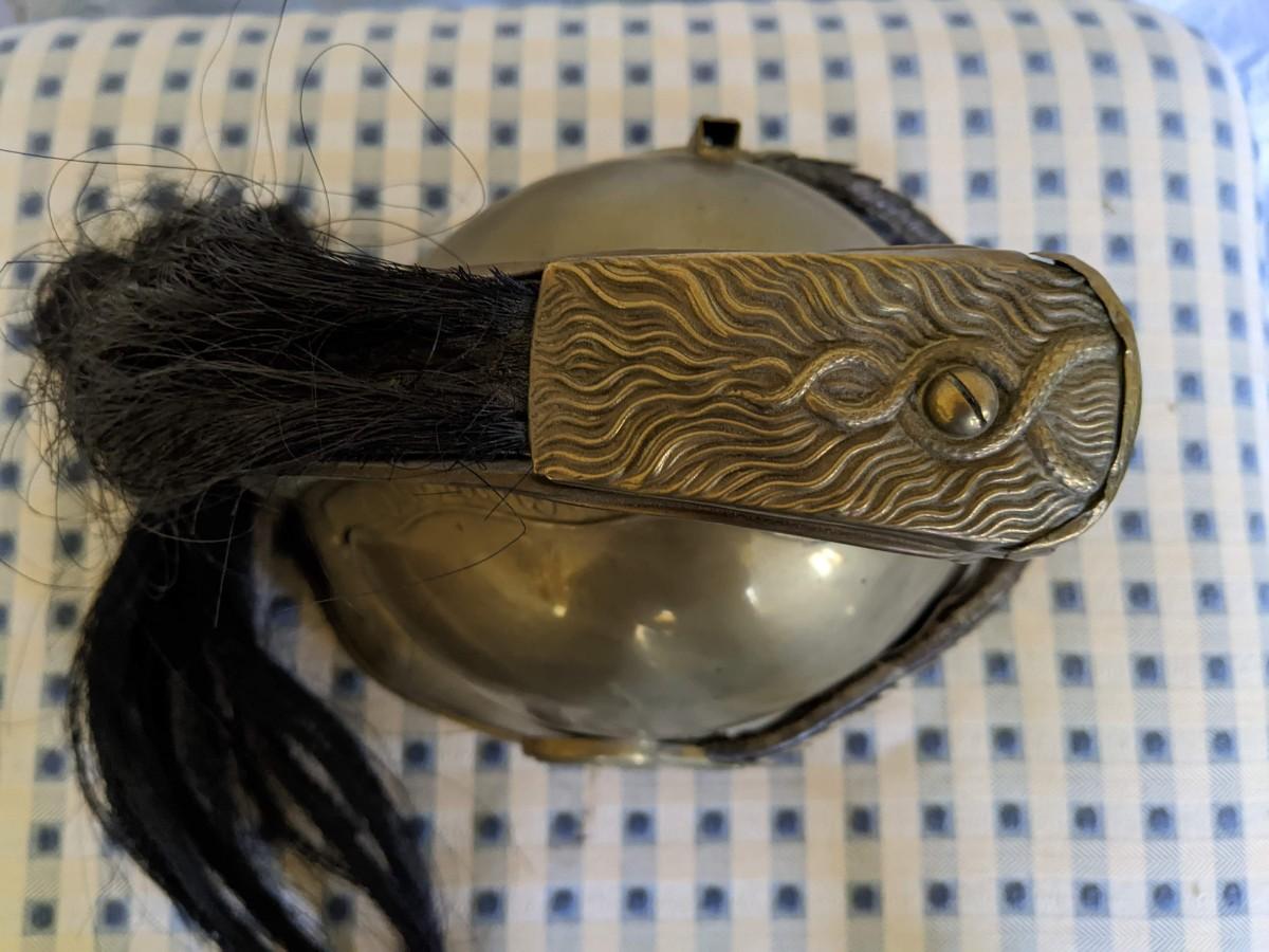 Antique French Brass Cuirassier Helmet with black horse hair mane