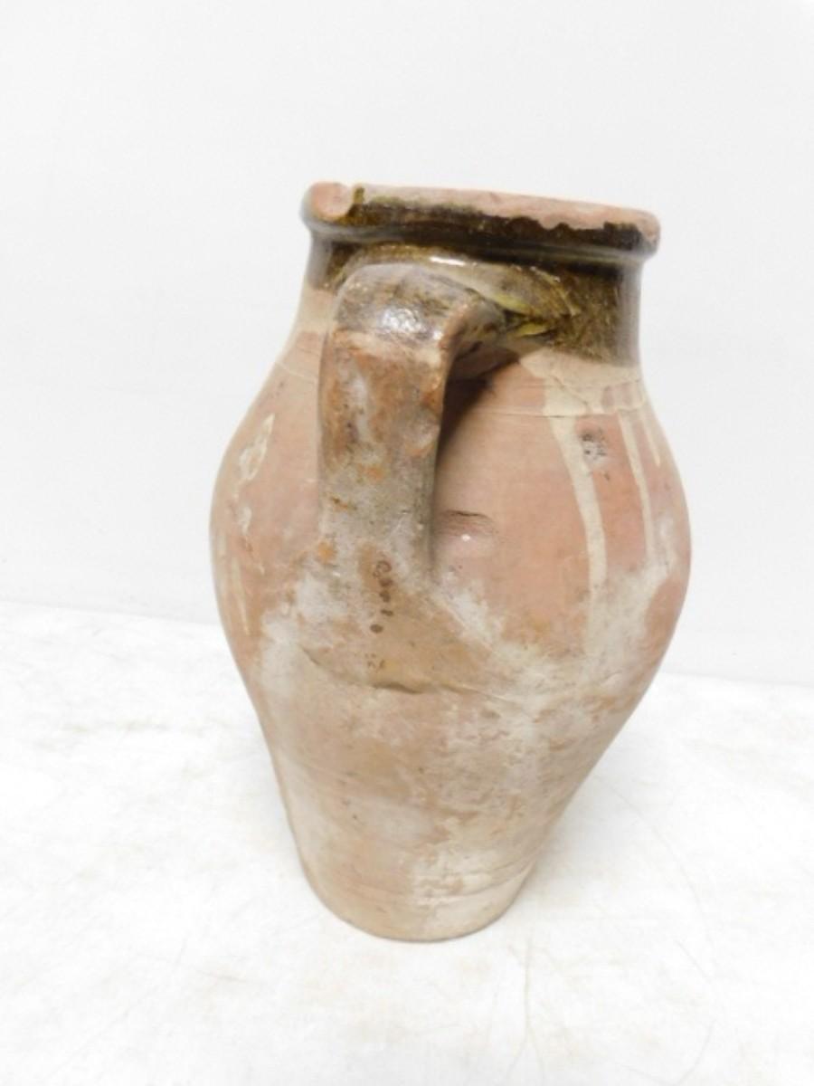 Antique French Brown Glaze Terra Cotta Confit Pot Single Handle 13"   (L)