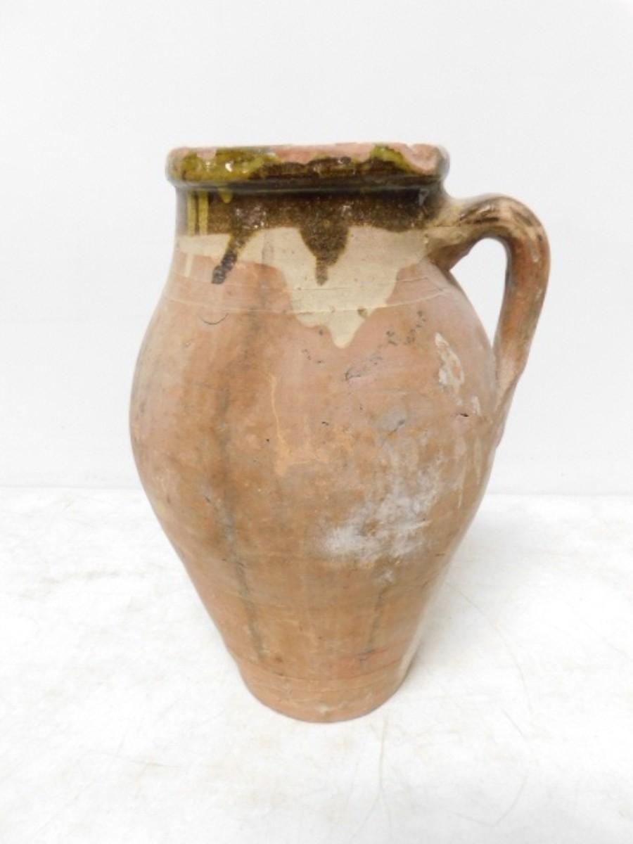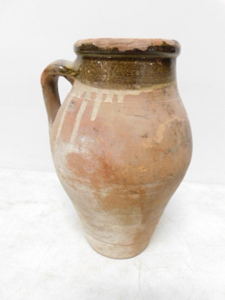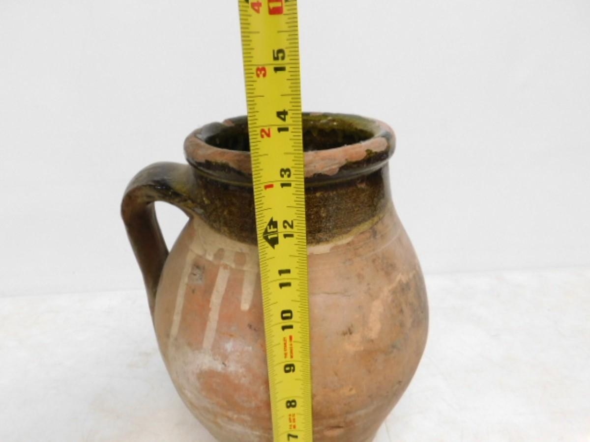 Antique French Brown Glaze Terra Cotta Confit Pot Single Handle 13". Third party shipping only. Firm will ensure item is properly delivered to shipper of your choice in the 28792 zip code area.