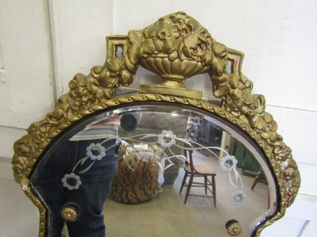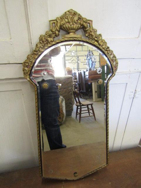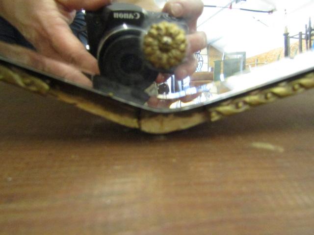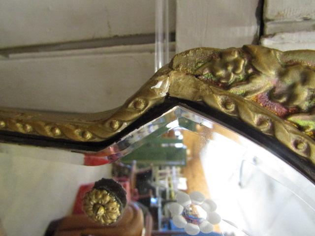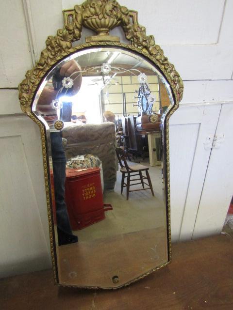 Antique French Decorative Wood Framed Beveled Glass Mirror 28"x14" some missing trim around the frame as shown.