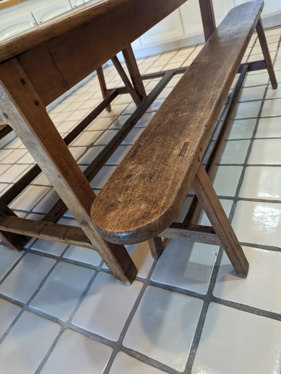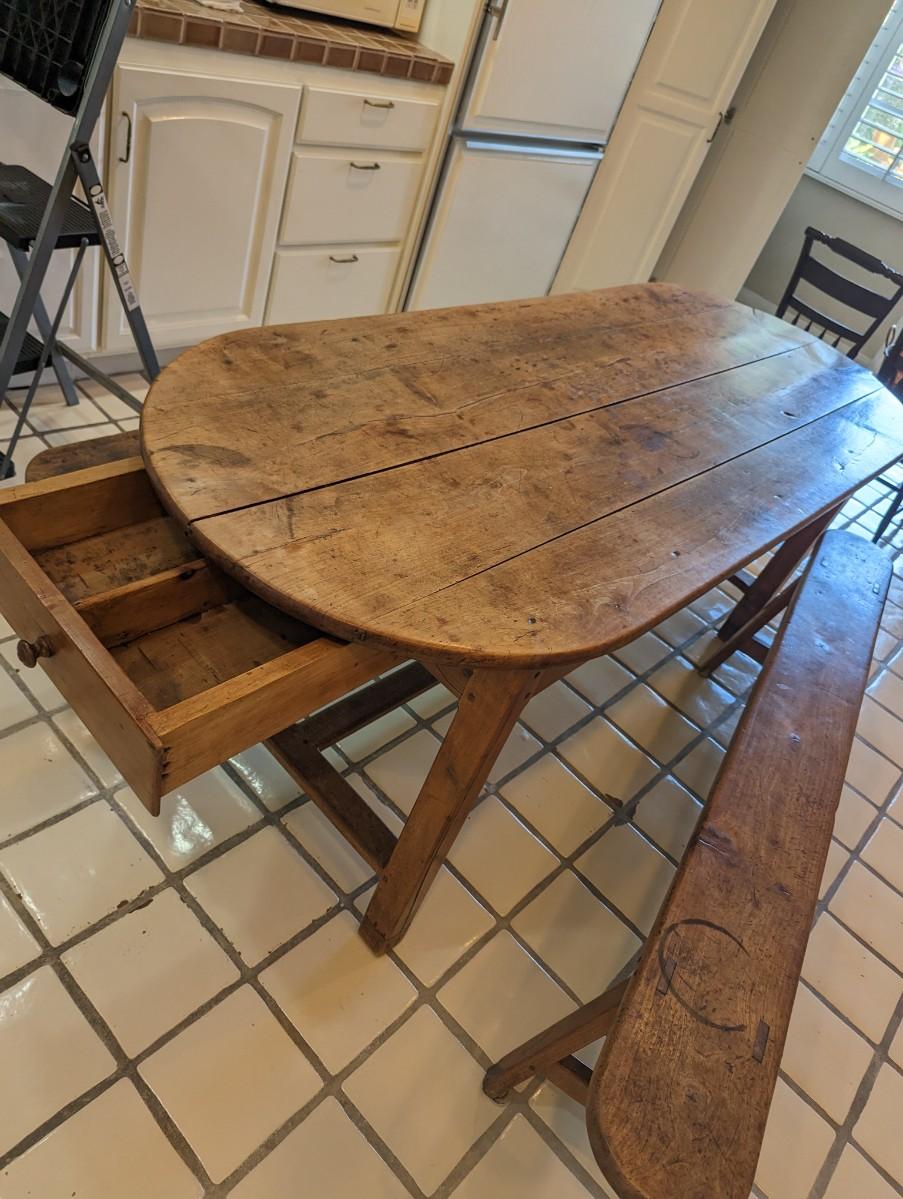 French Dining Table with benches and drawer