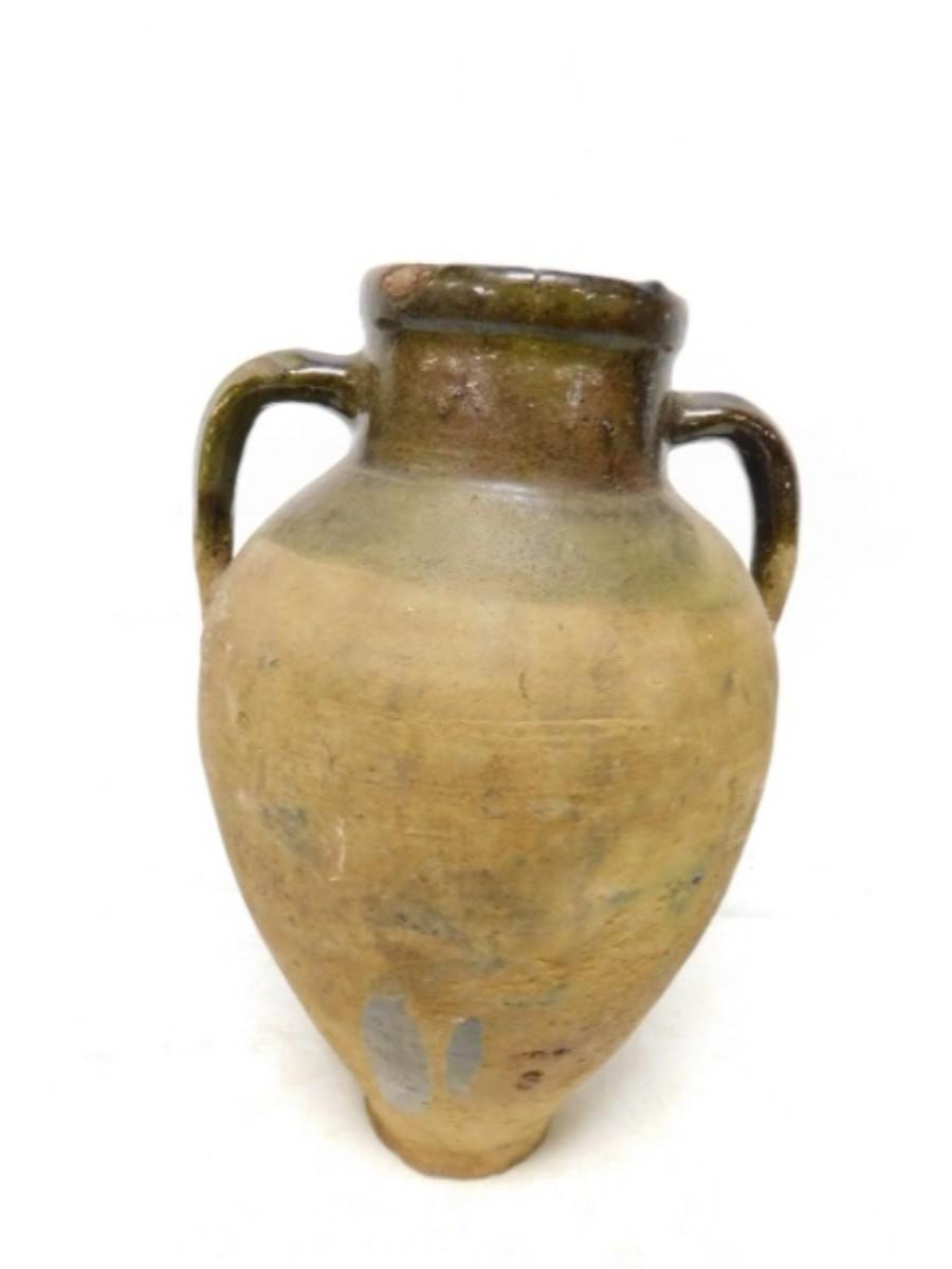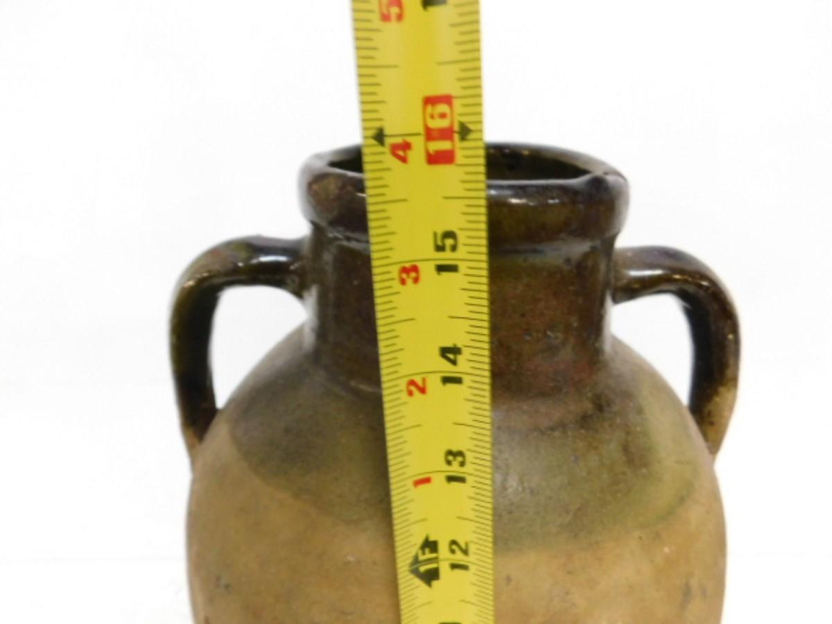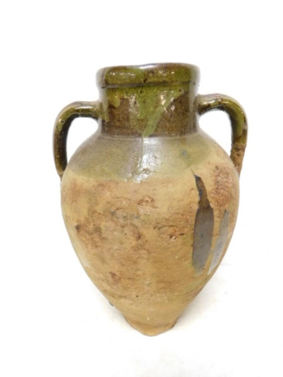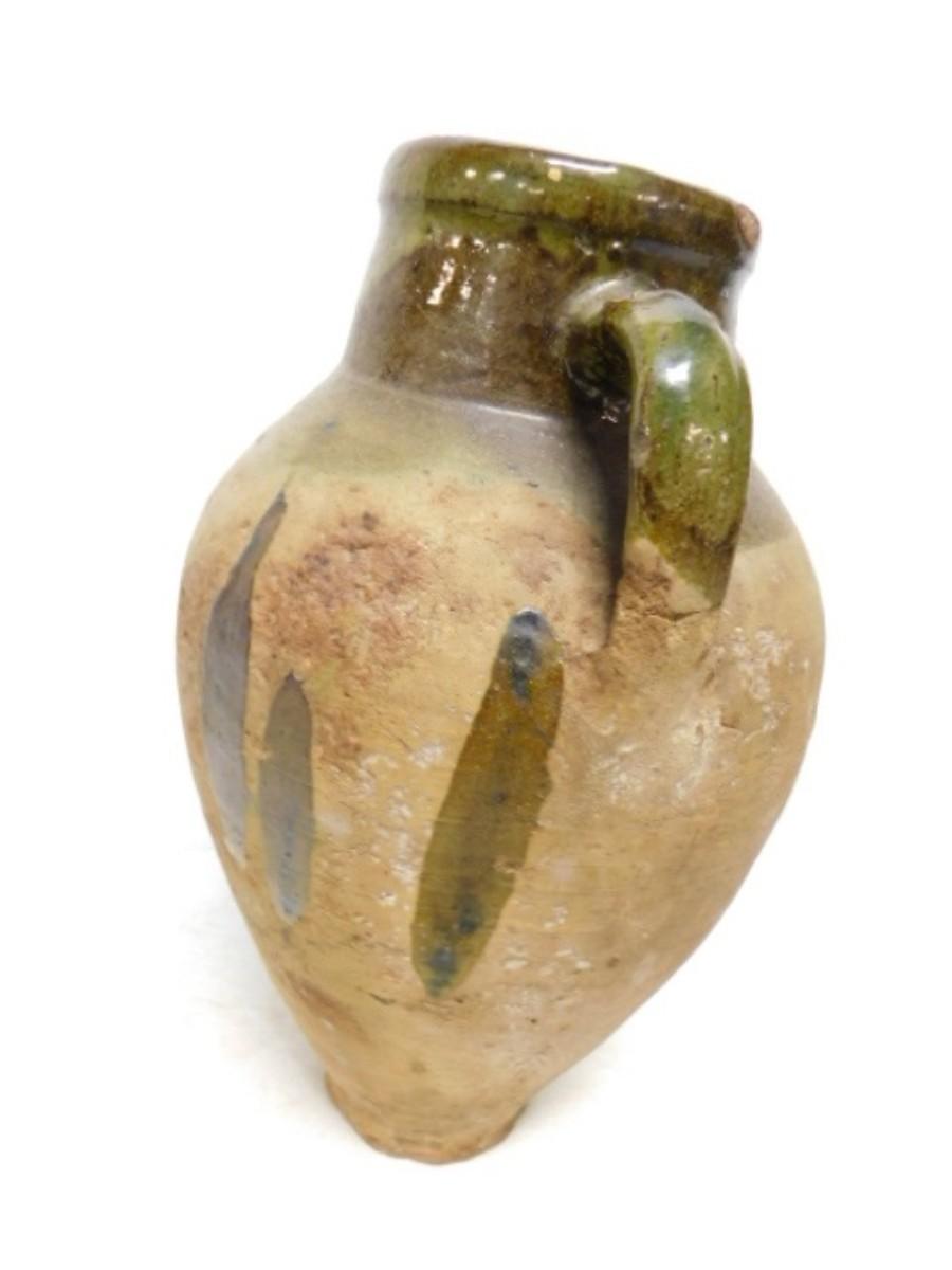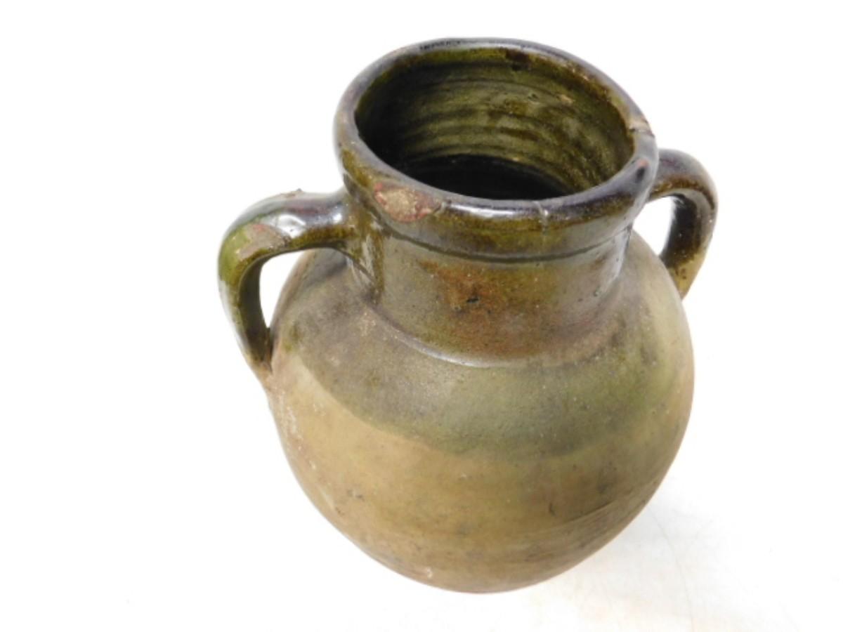 Antique French Green Glaze Confit Pot Double Ear Handle   (I)