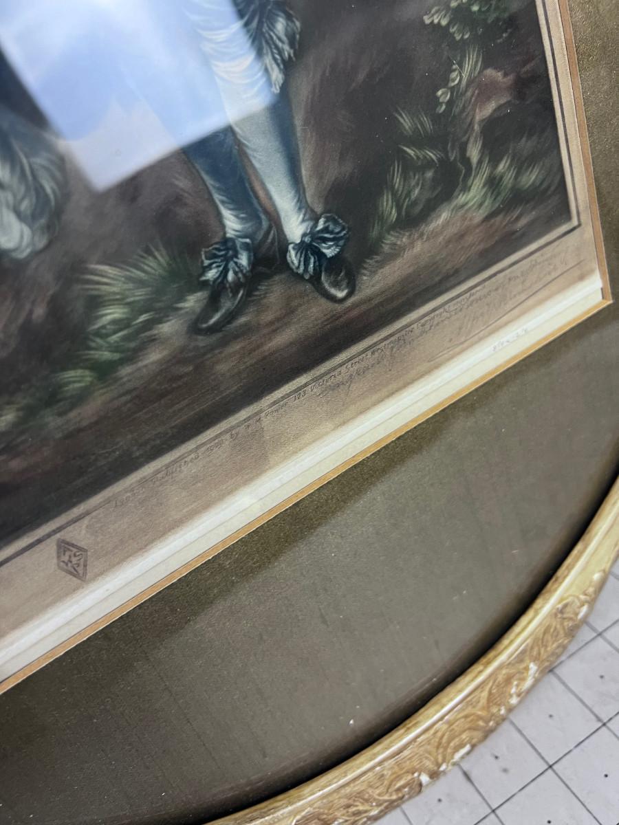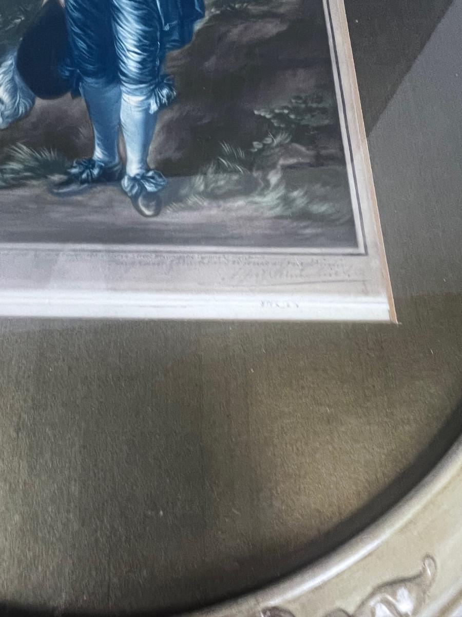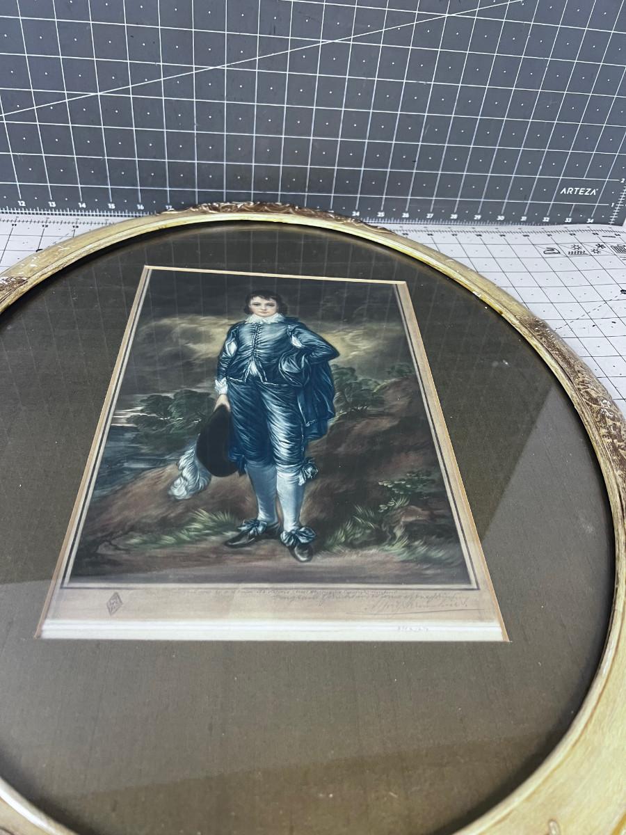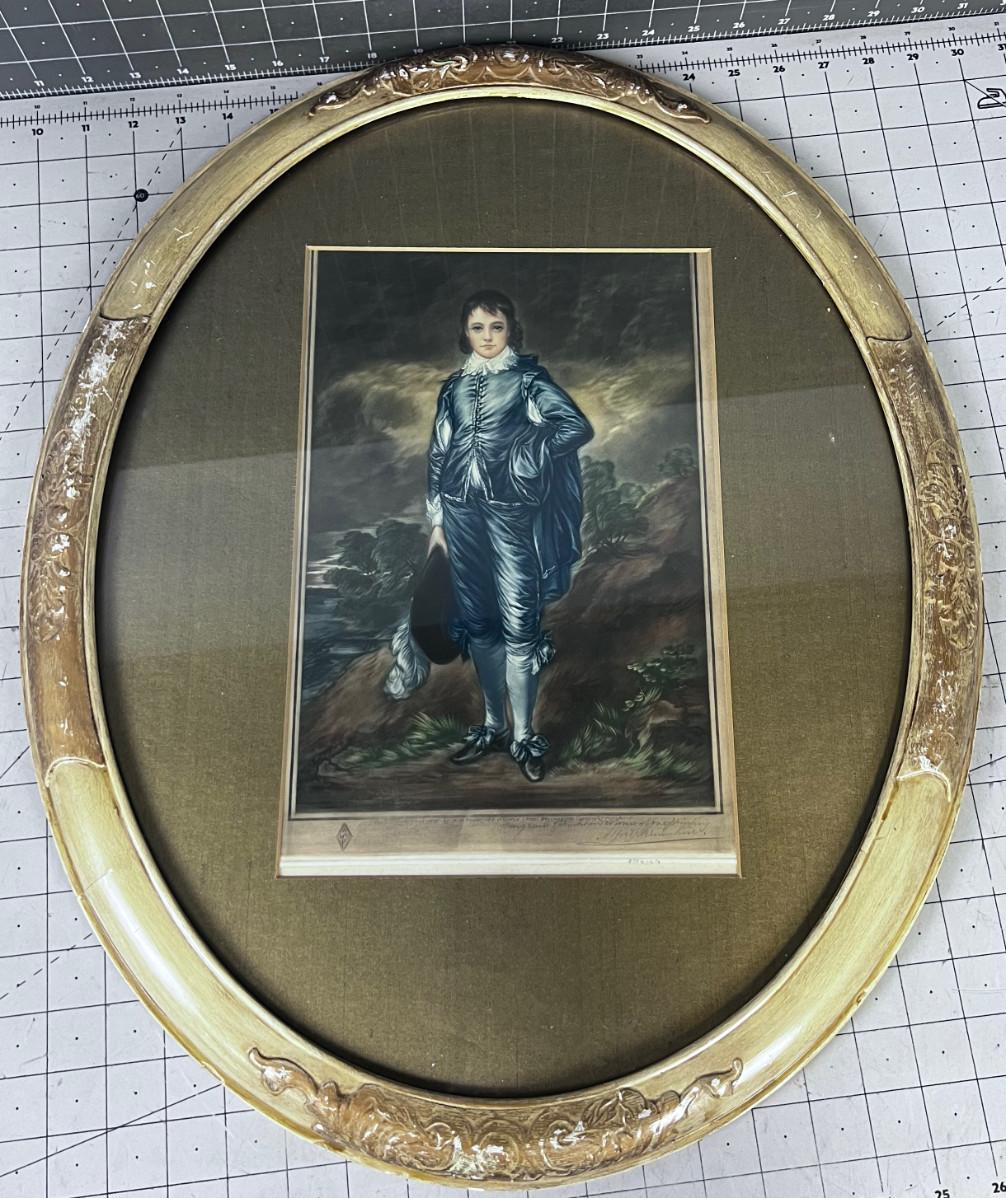 Antique French Lithograph Appears to be signed in Pencil of Blue BOY Oval Framed