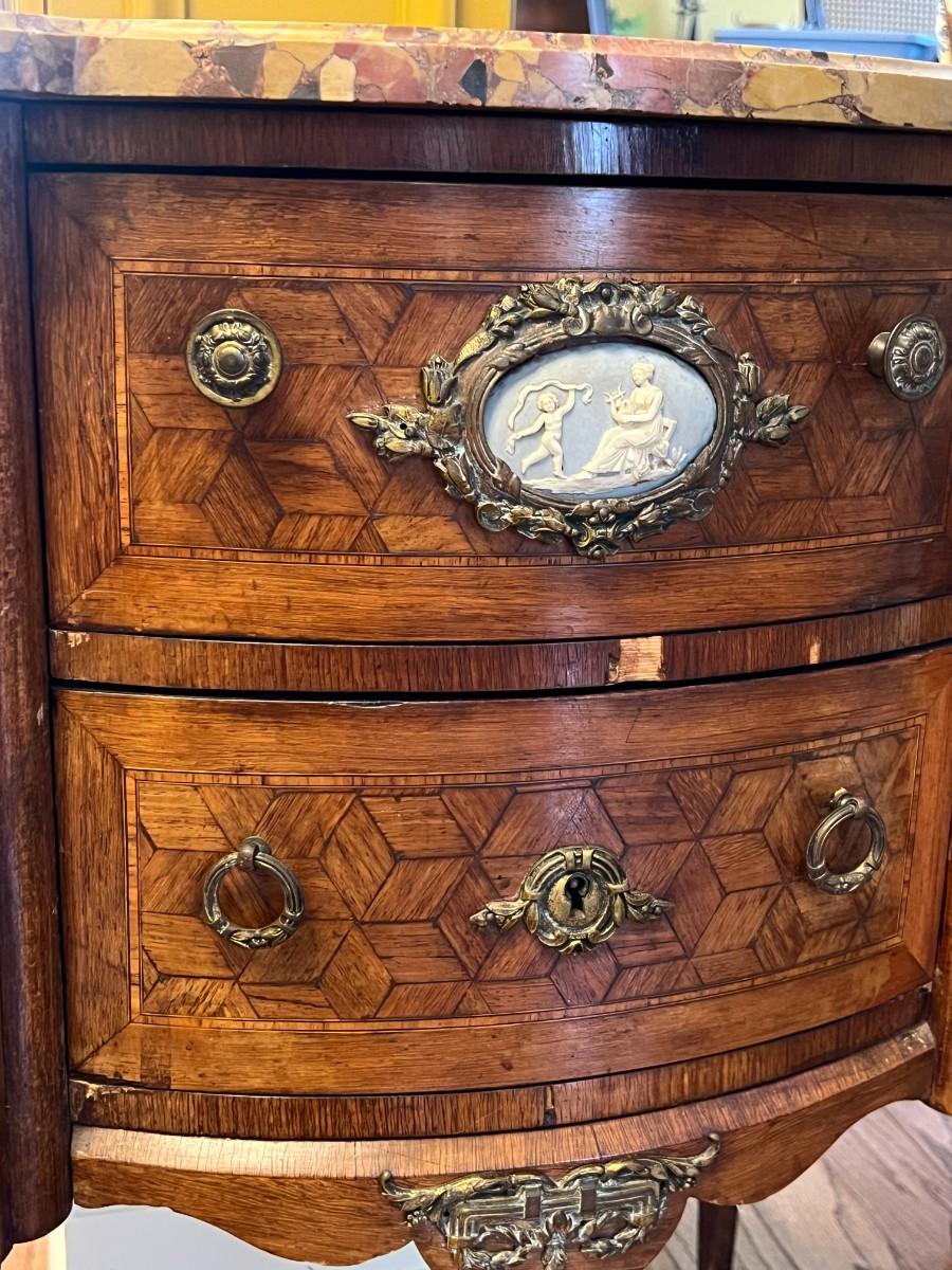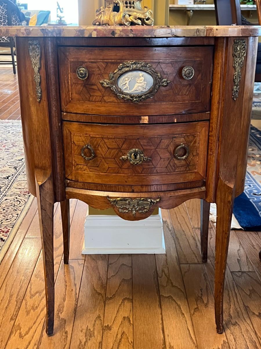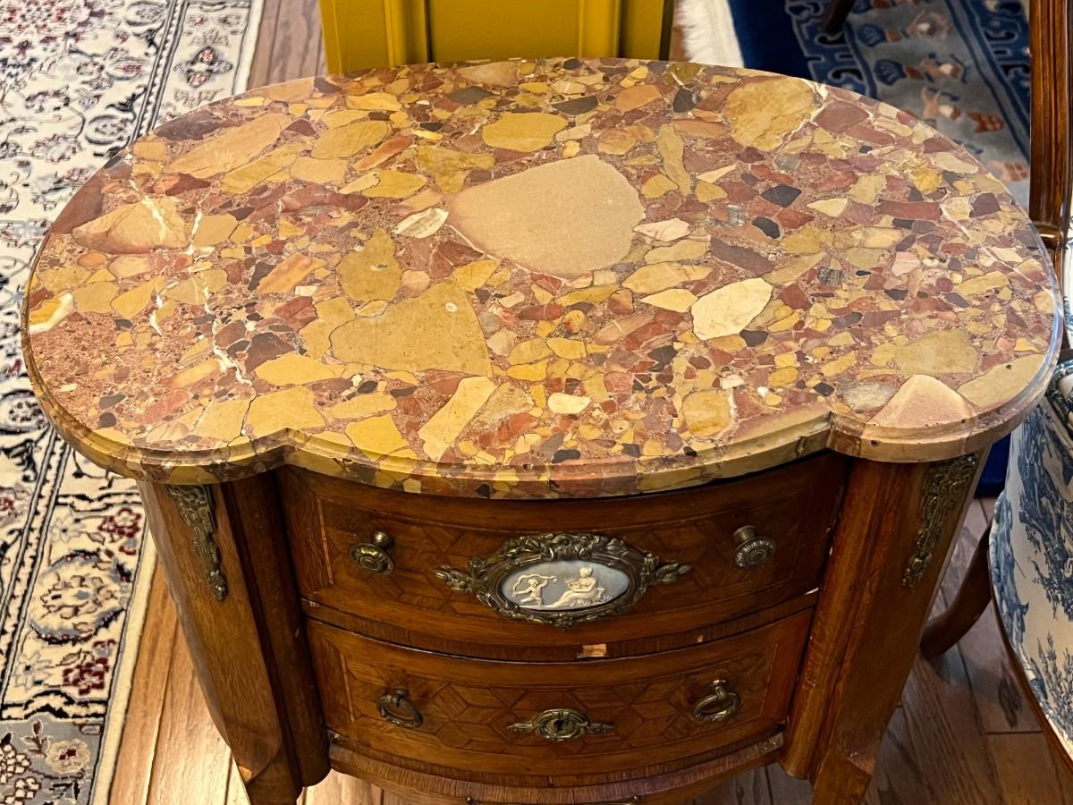 Antique French Louis XV Style Rouge Marble Top Bombe Commode Nightstand Side Table