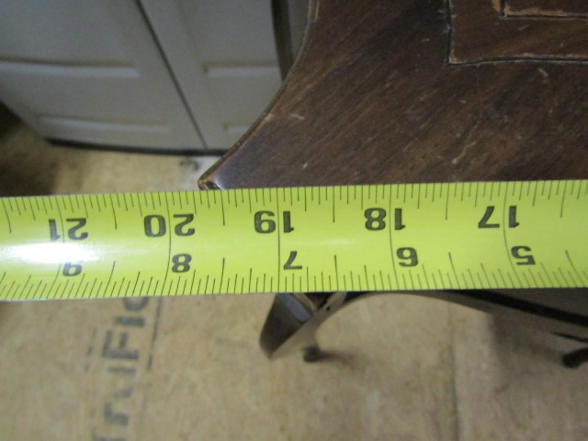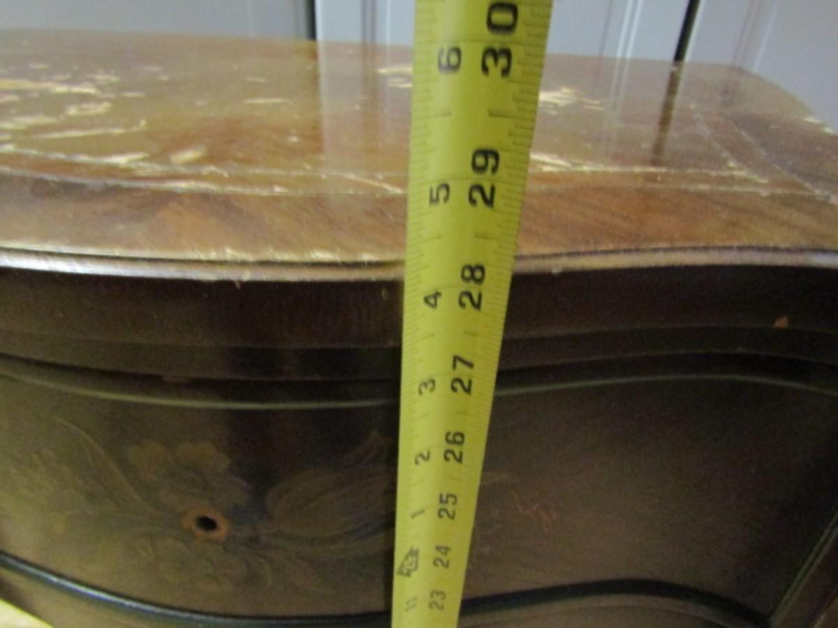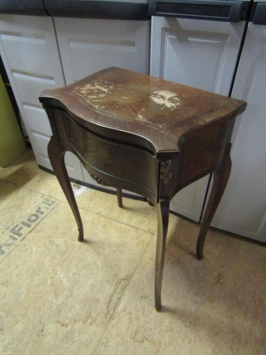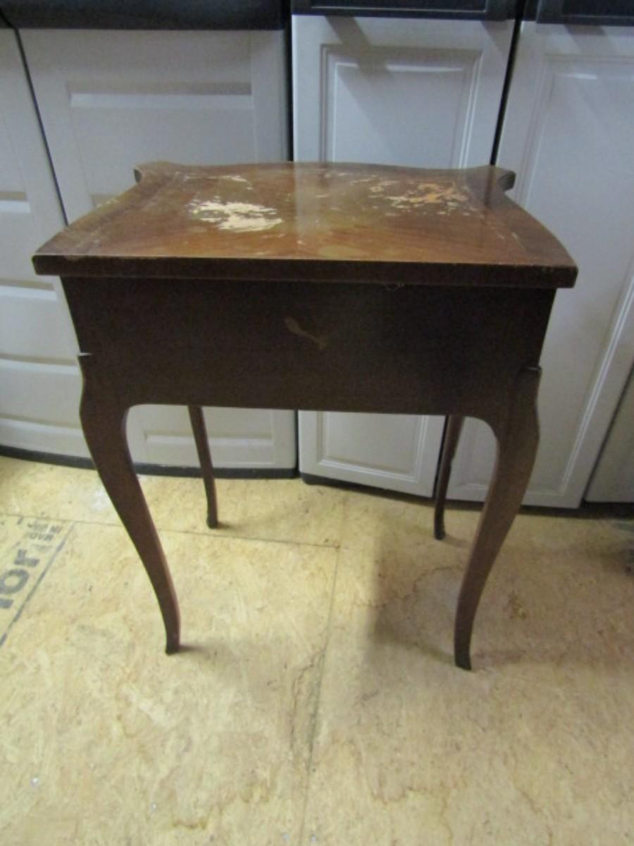 Antique French Louis XVI Inlay Single Drawer Table has some finish missing from surface as shown. Downstairs item