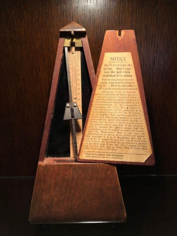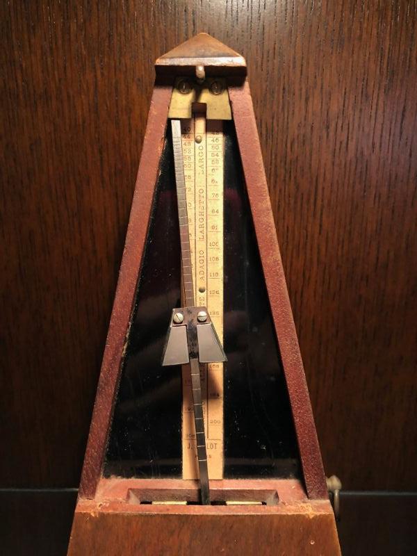 Very nice condition antique Maelzel Metronome, made in France, in working condition. All parts present and included. 9” tall x 4.25” at base.