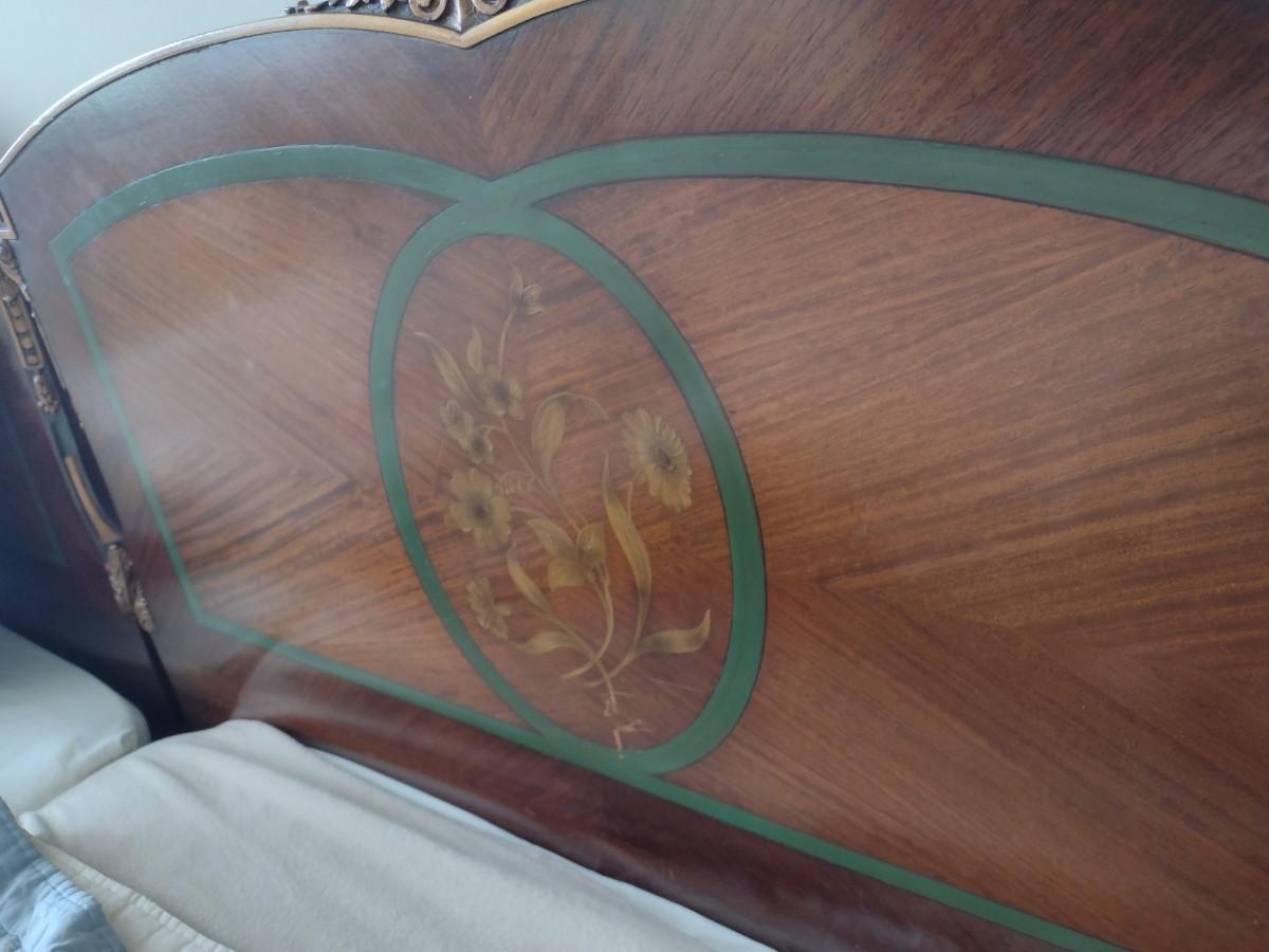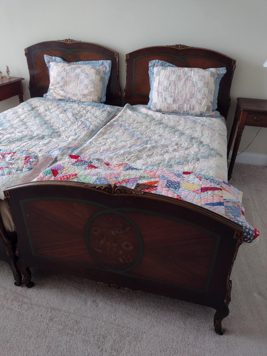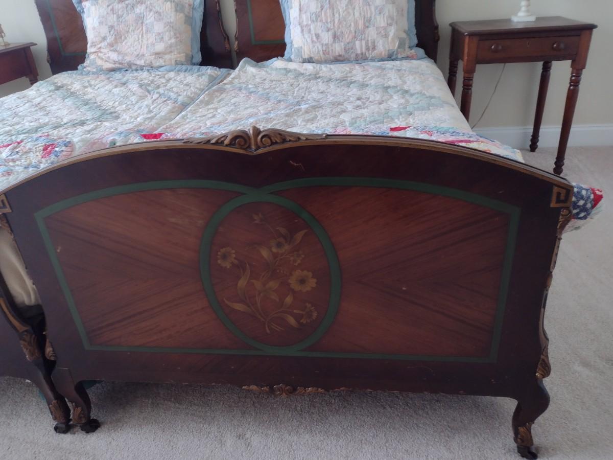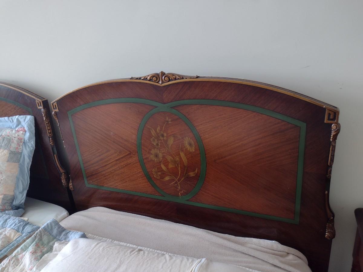 Antique French Napolean Inlay Mahogany Twin Bed with Mattress Set (Bedding Excluded) Choice A downstairs item. Bring tools to break down. Expect some scratches or wear