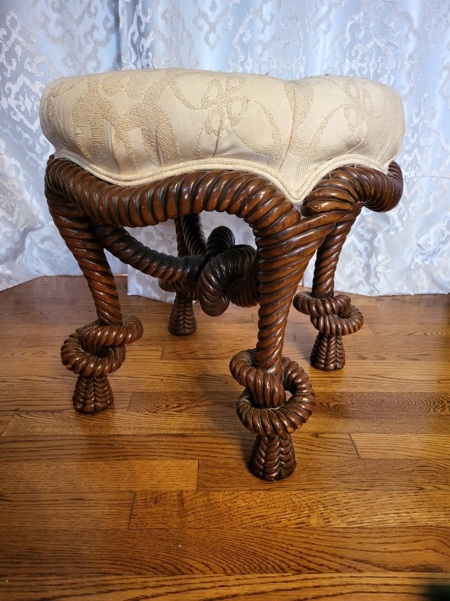 Antique French Napoleon III Style Rope Twist Dressing Stool