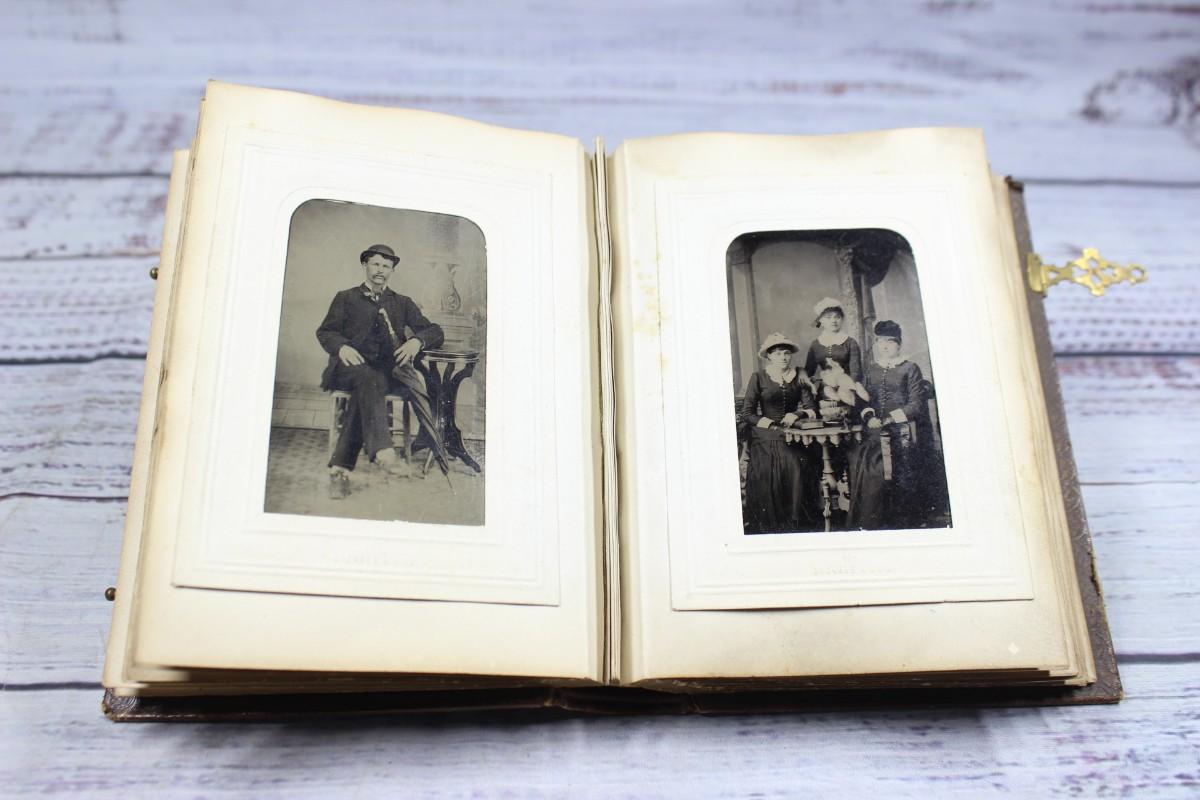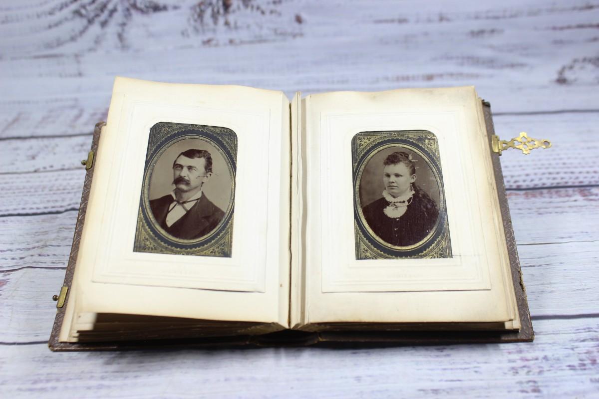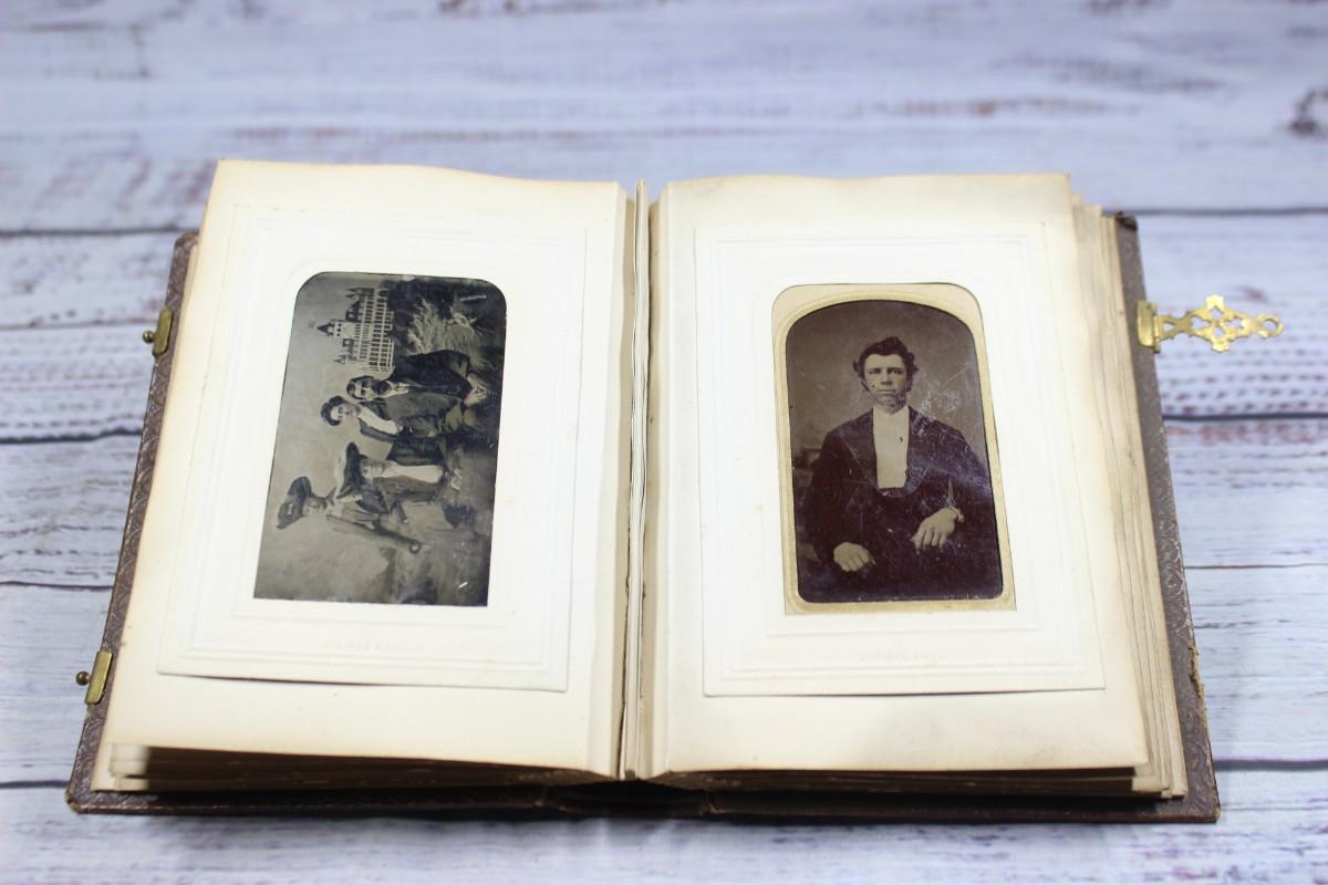 Antique French Photo Album Filled with Hand Painted Daguerreotype Photo Portraits