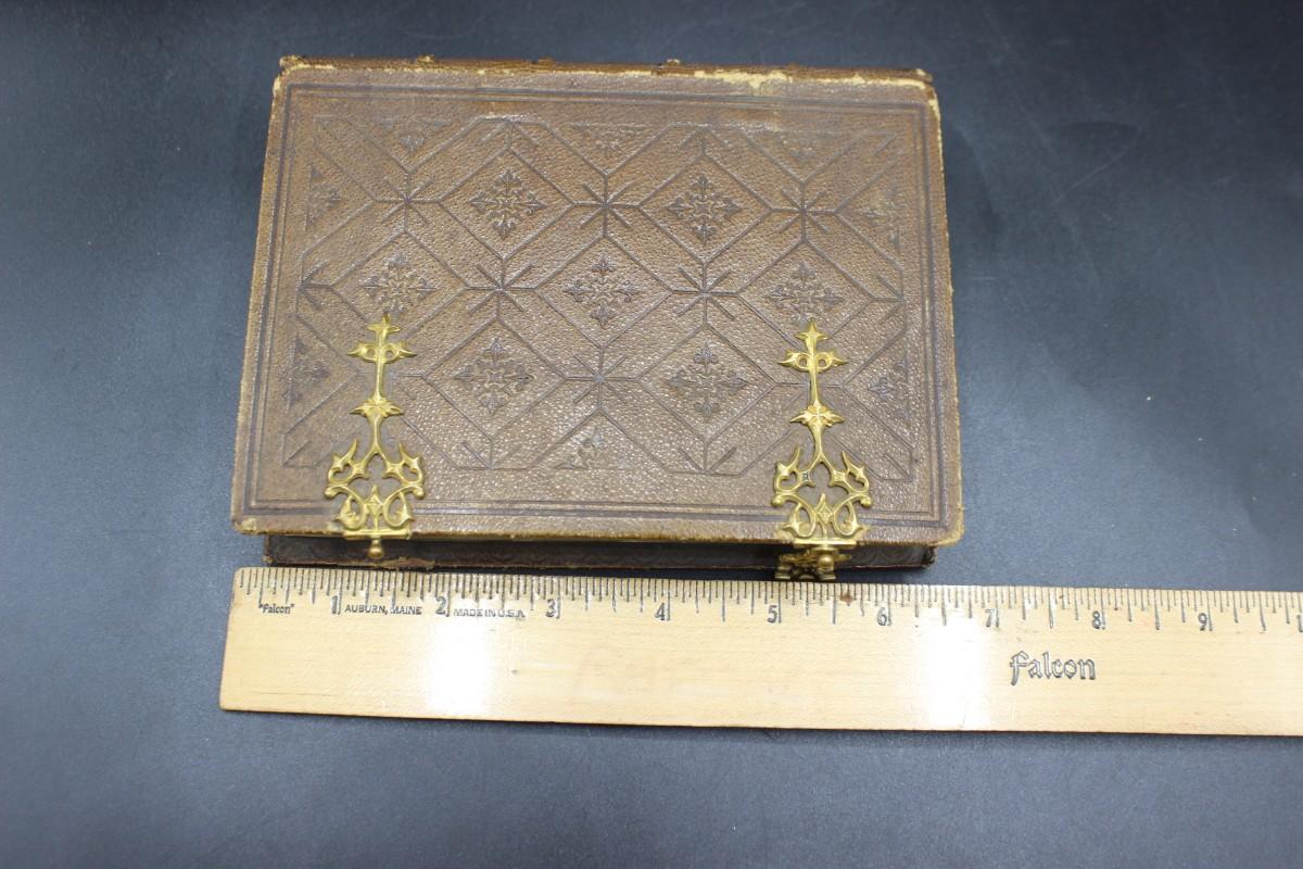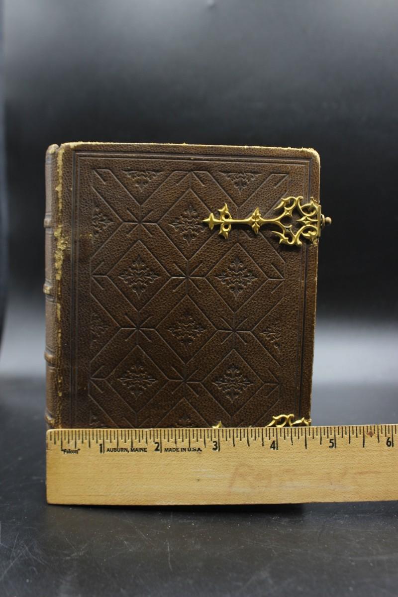 Antique French Photo Album Filled with Hand Painted Daguerreotype Photo Portraits, there is some wear to the album as well as a missing hinge piece, some photos also have a little vintage wear to them. There is no other significant damage to the photo album and photographs and is in overall good condition for its age. Check pictures for more details and for sizing.