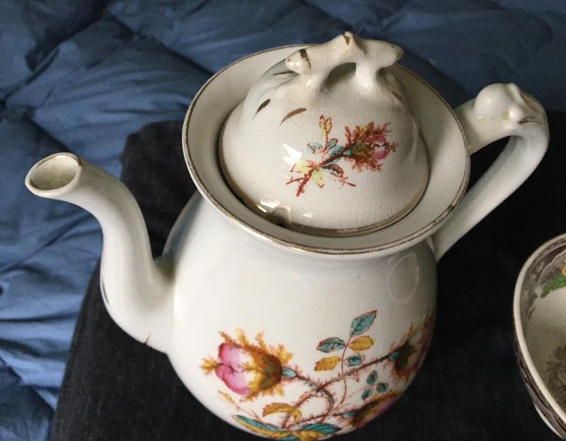 Antique French Porcelain Teapot and Rice Bowl