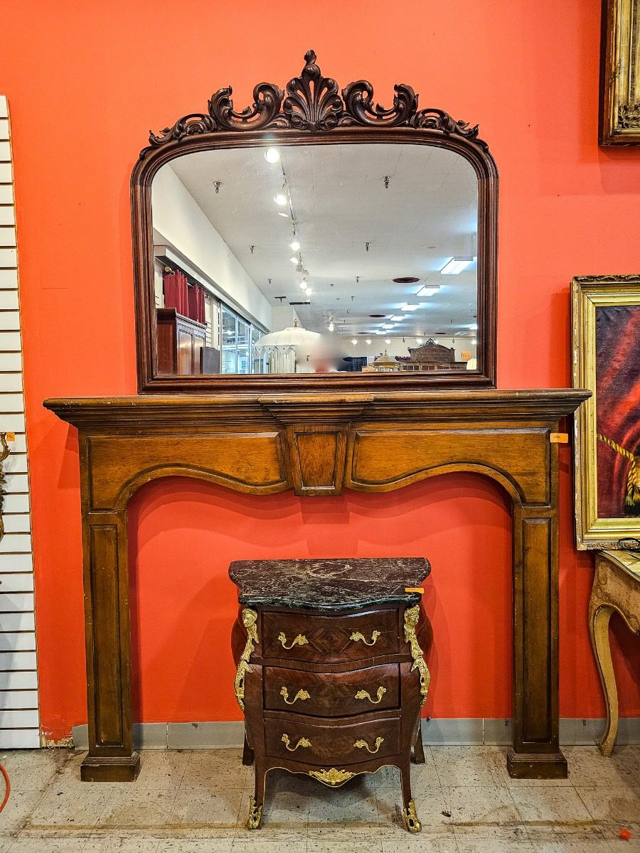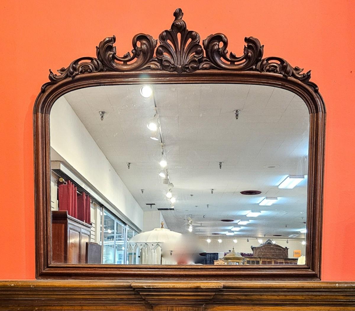 Finely carved 19th century Rococo revival rosewood over mantle mirror. France, circa 1870, 52-1/2"W x 43"H