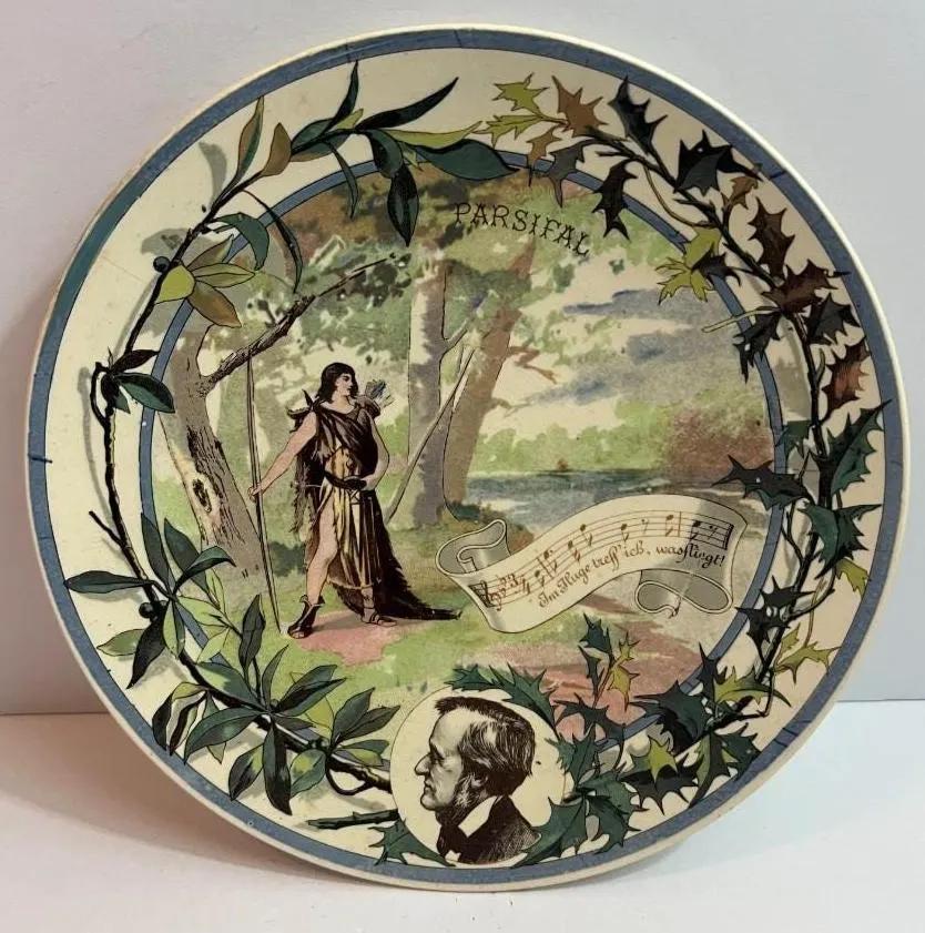 Antique French Sarreguemines Musical Theme Plate 8-3/4" "Parsifal" in VG Preowned Condition.
