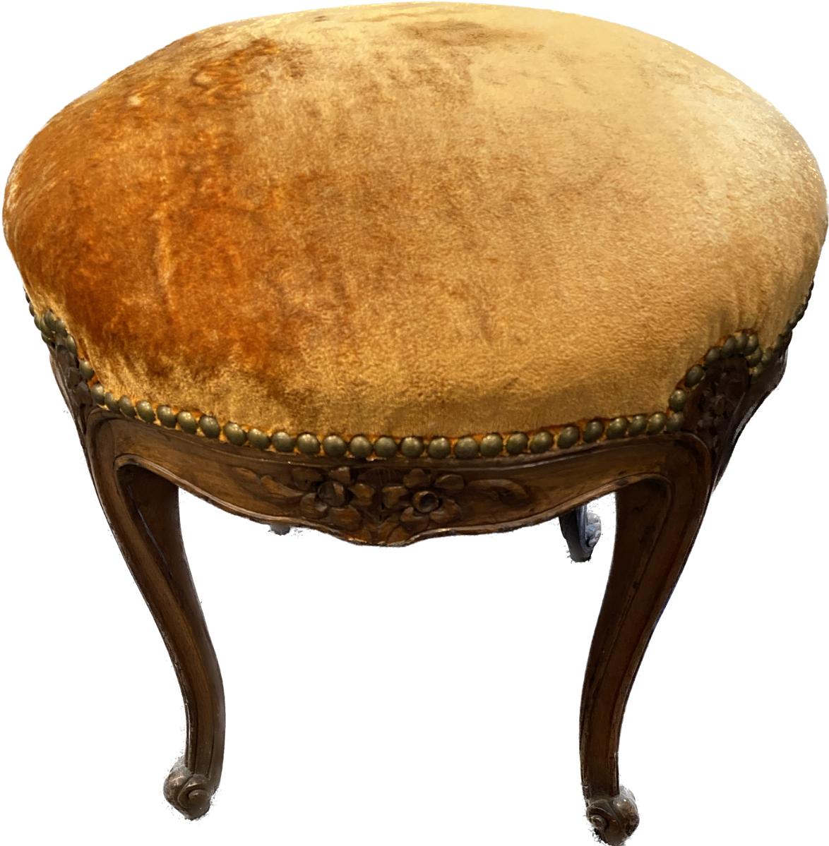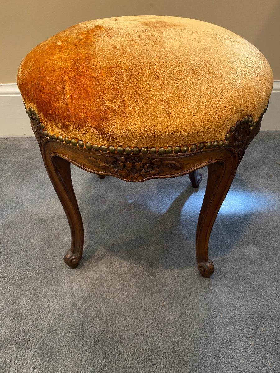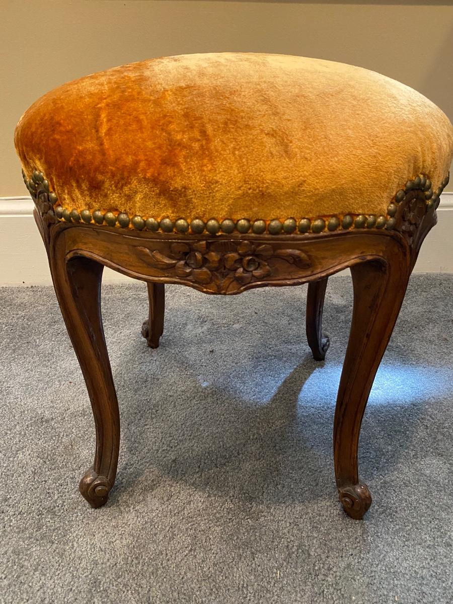 Antique Gold and Nail Head Upholstered French Style Stool As Pictured