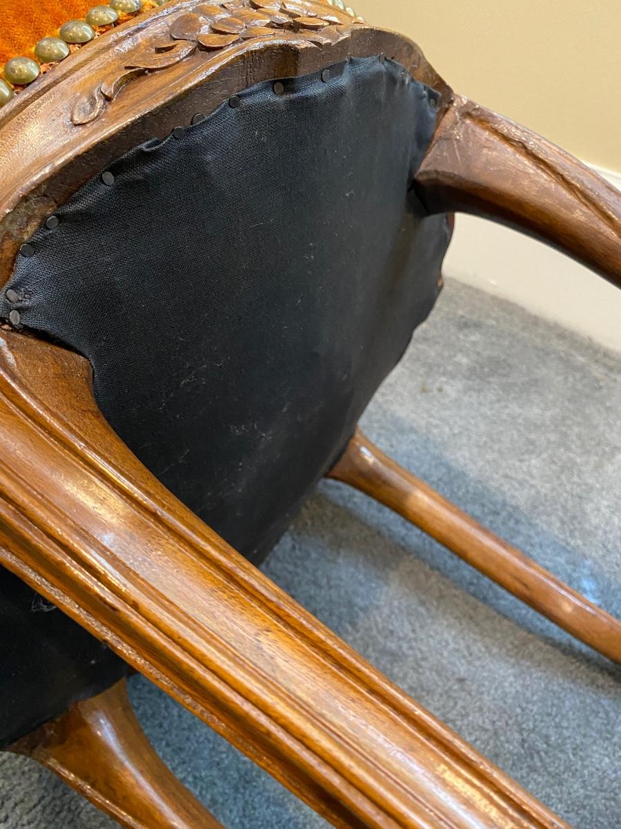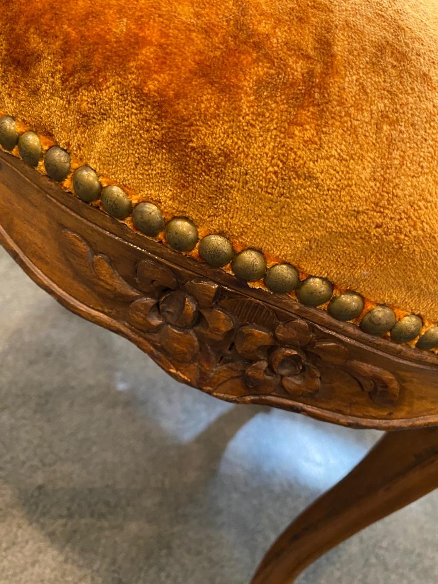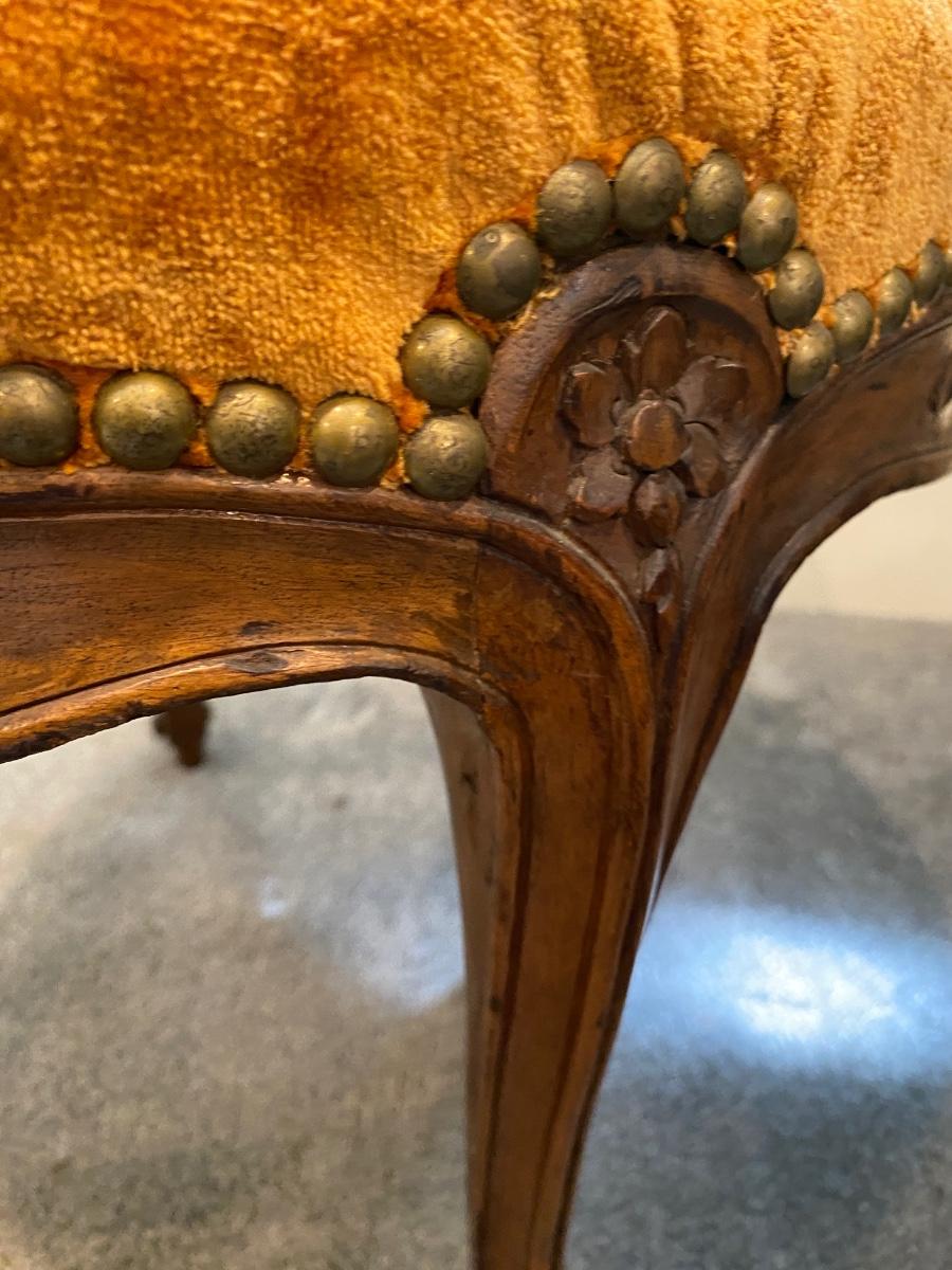 Antique Gold and Nail Head Upholstered French Style Stool As Pictured