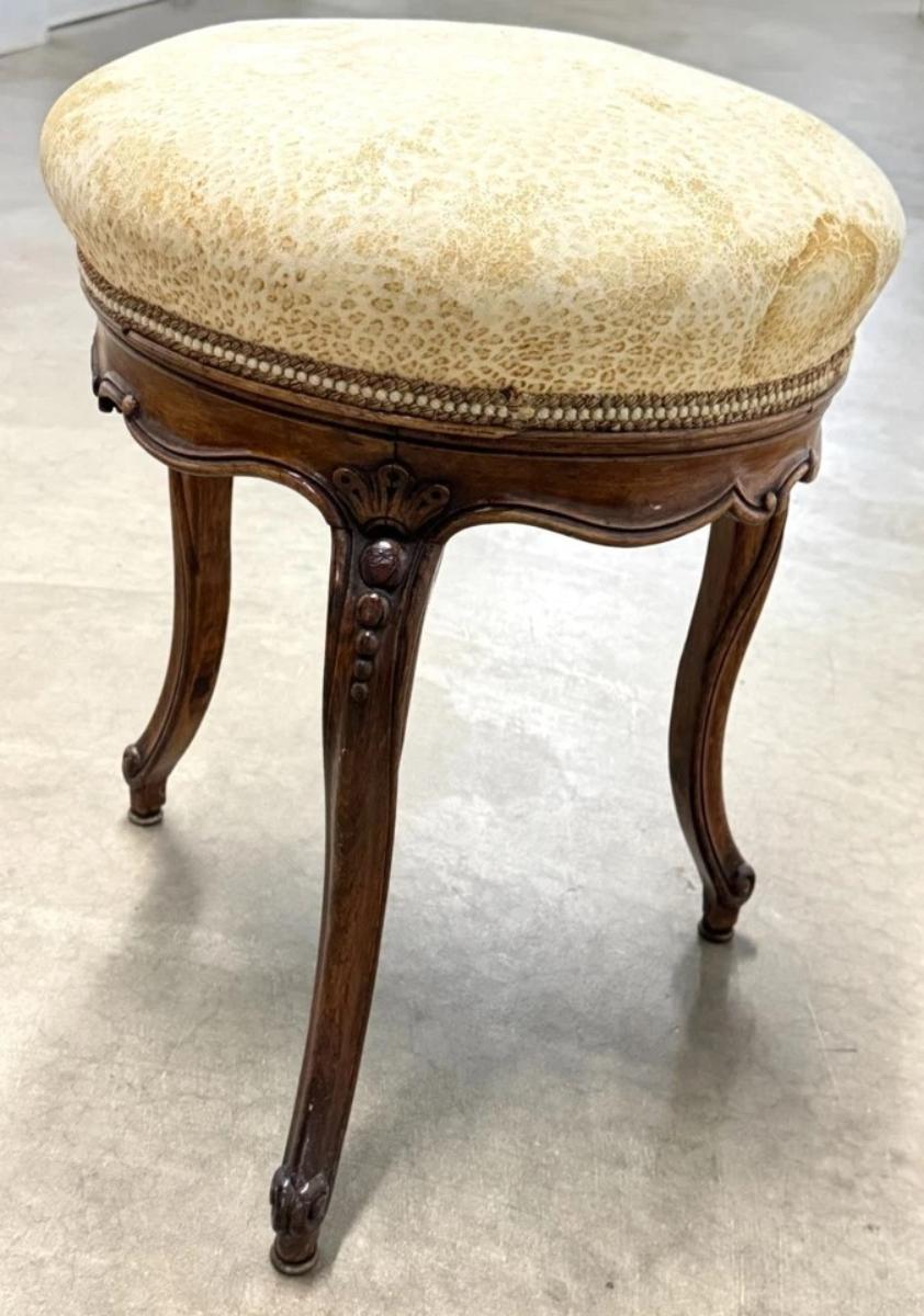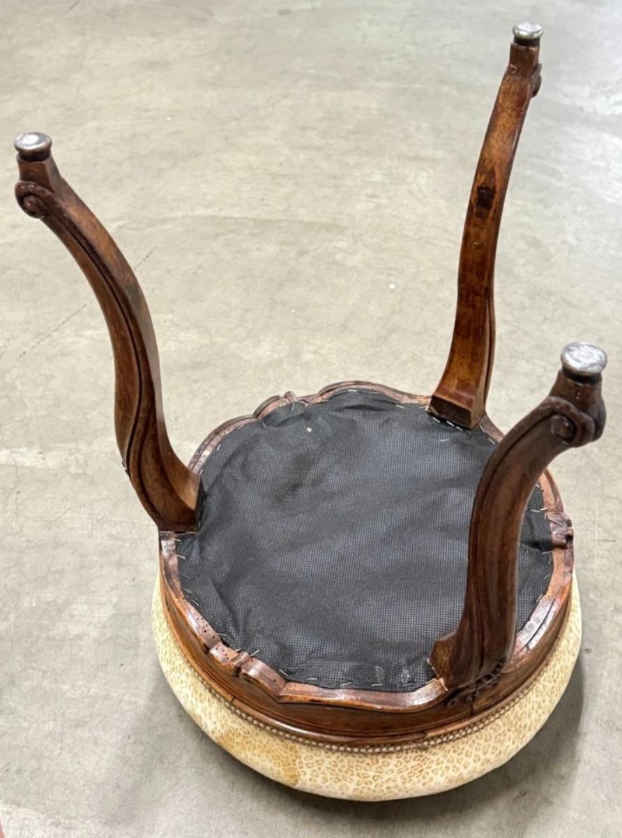 Antique French Carved Walnut Wood Tripod Foot Stool 14.5" x 21"