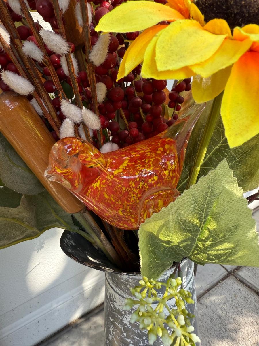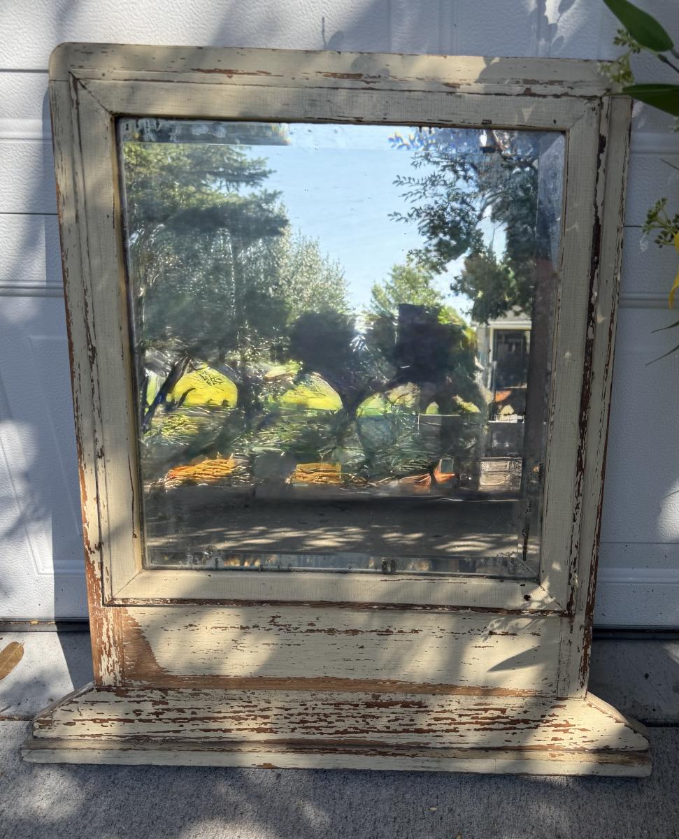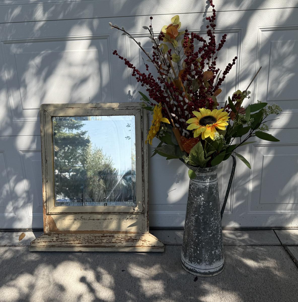 Antique French Window Casement Mirror(Heavy) w/Flower fall arrangement w/glass bird