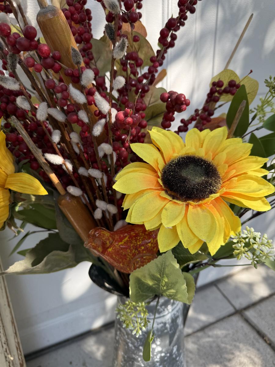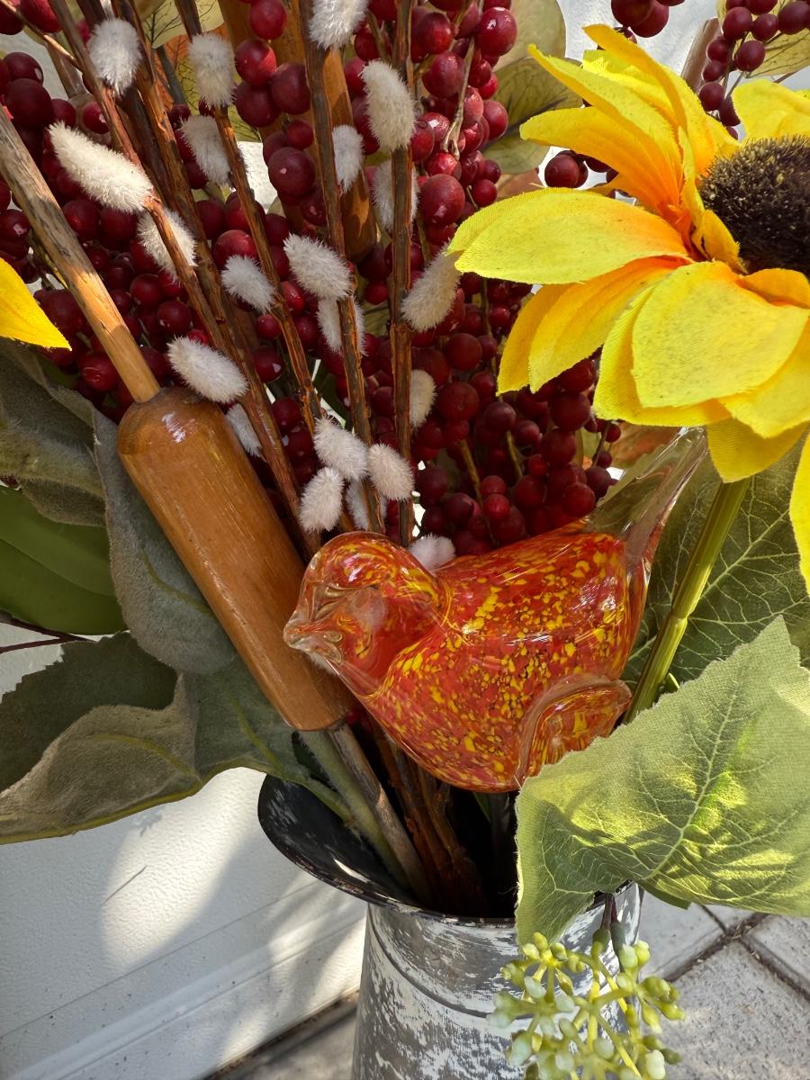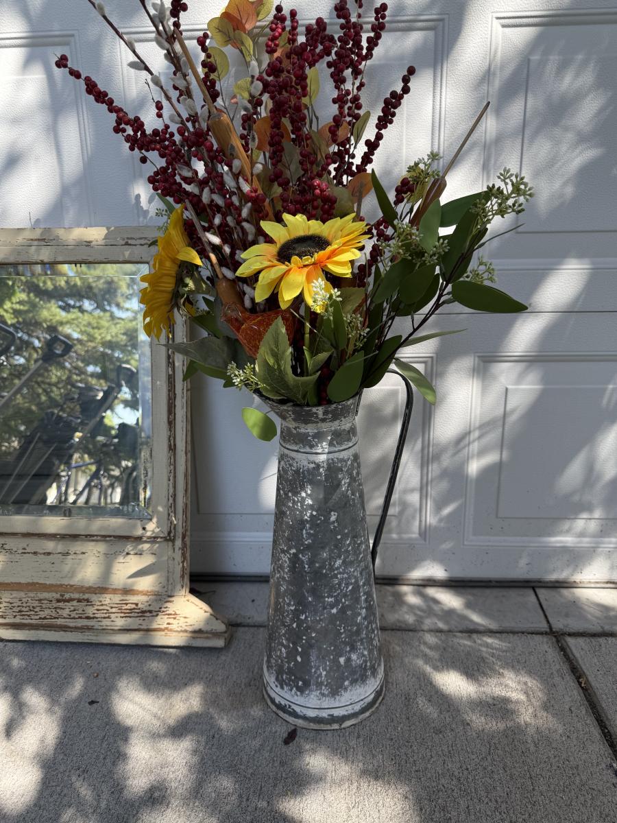 Antique French Window Casement Mirror(Heavy) w/Flower fall arrangement w/glass bird