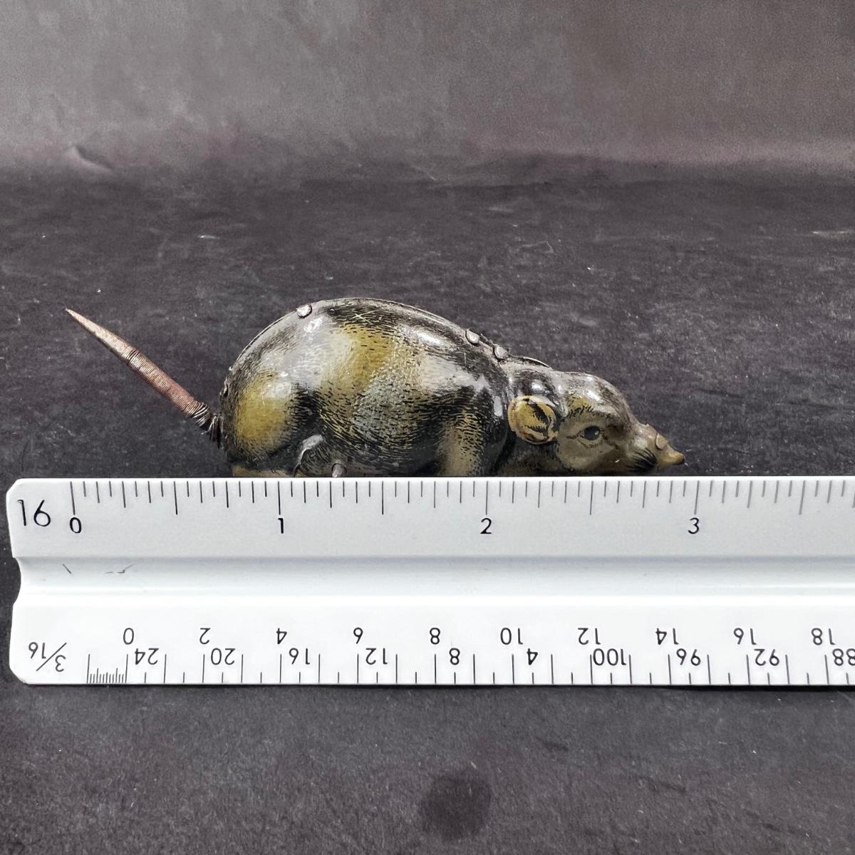 This Small Rat or Mouse was made in Germany in the 1920s. It was one of many "Penny Toys" created by Distler. Since he's a friction toy, there isn't a video. Please see photos for details and condition. **|** ::: Shipping is available on this lot. If you require shipping you must let us know at the close of the auction. We will coordinate with you after the item has been won. Shipping fees will include insurance up to or exceeding the value of all items being mailed. If you have any questions regarding this lot please contact the auctioneer either via this website, by direct email or by phone. PICK UP TIMES and other important information can be found in the TERMS and DESCRIPTION of the auction. Please take a look for pertinent information. Thanks!