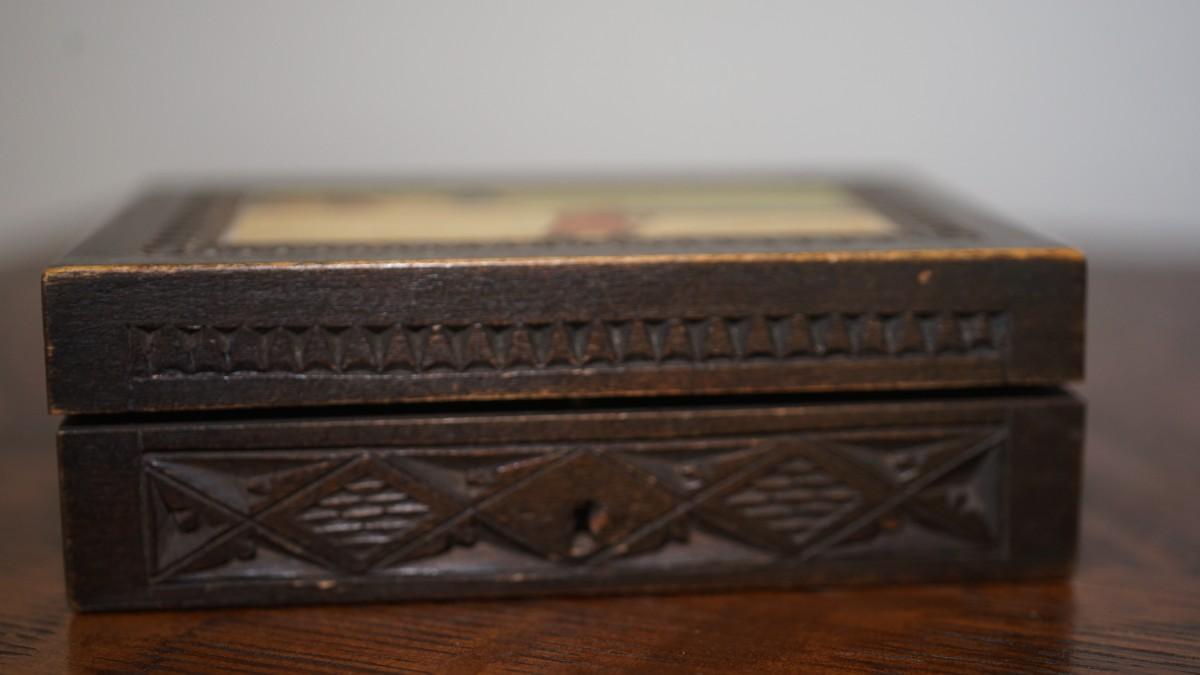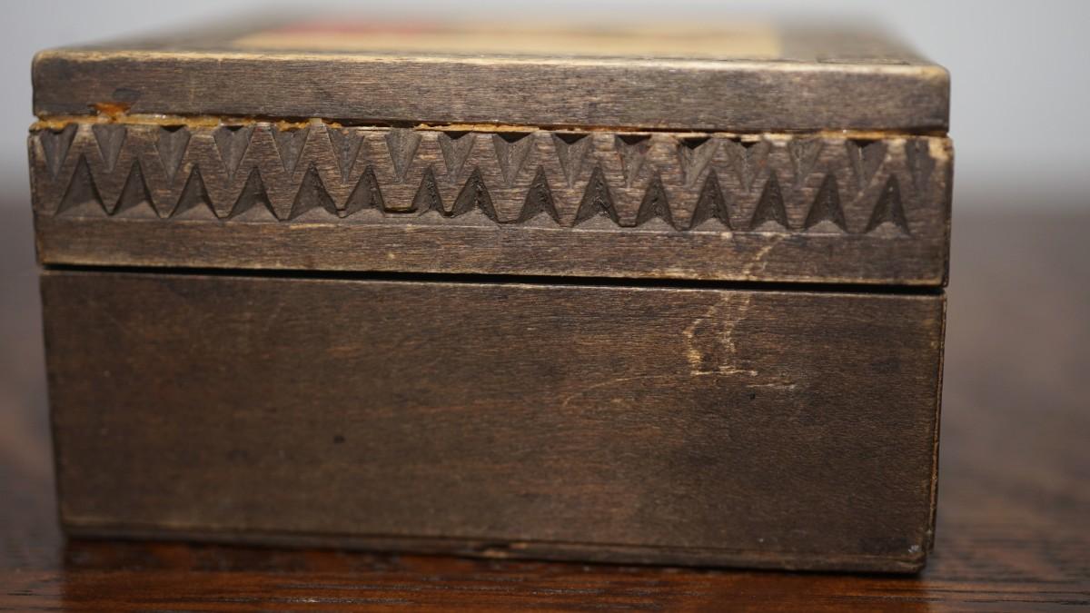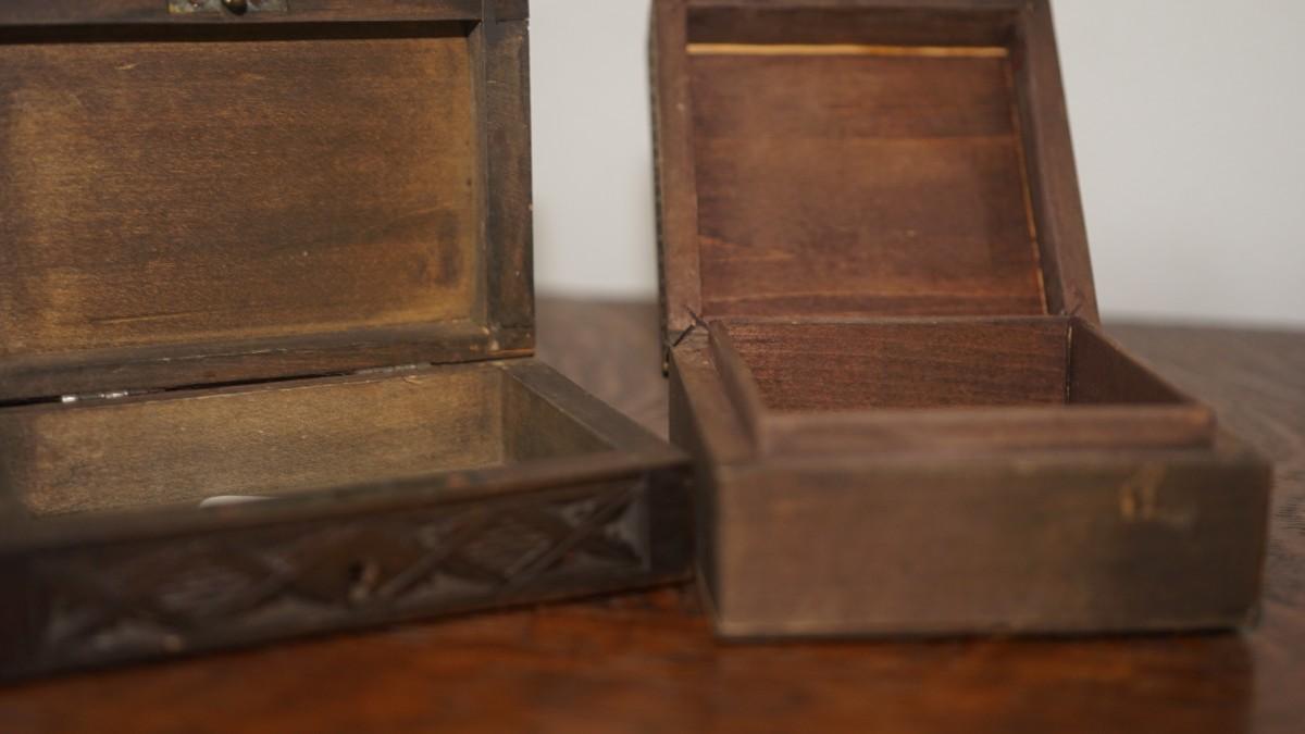 The sides and top of these boxes is intricately carved. of geometric patterns.