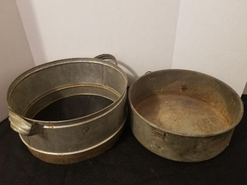 I have no idea what this is.. The inner pan is missing a handle. And the handle on the outer pan is bent. Would be a cool planter.