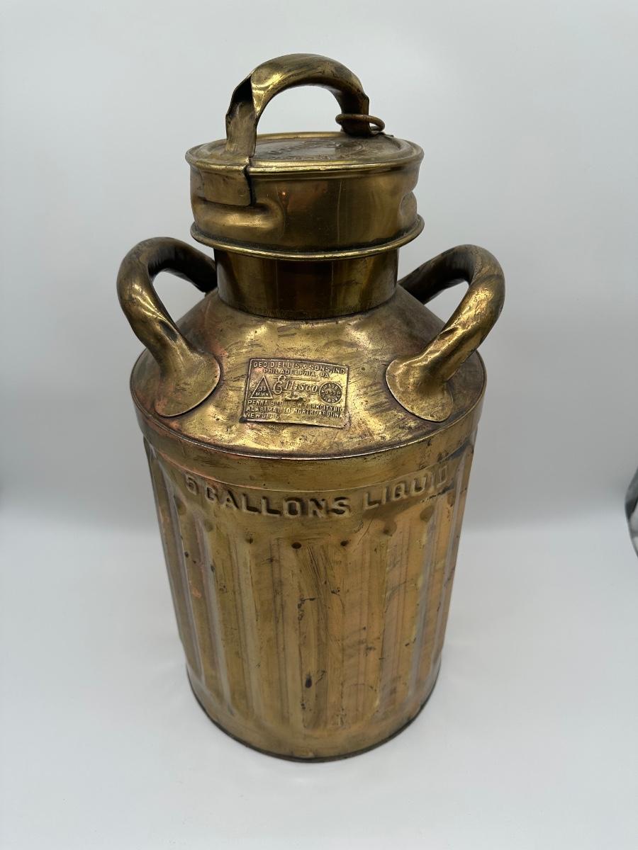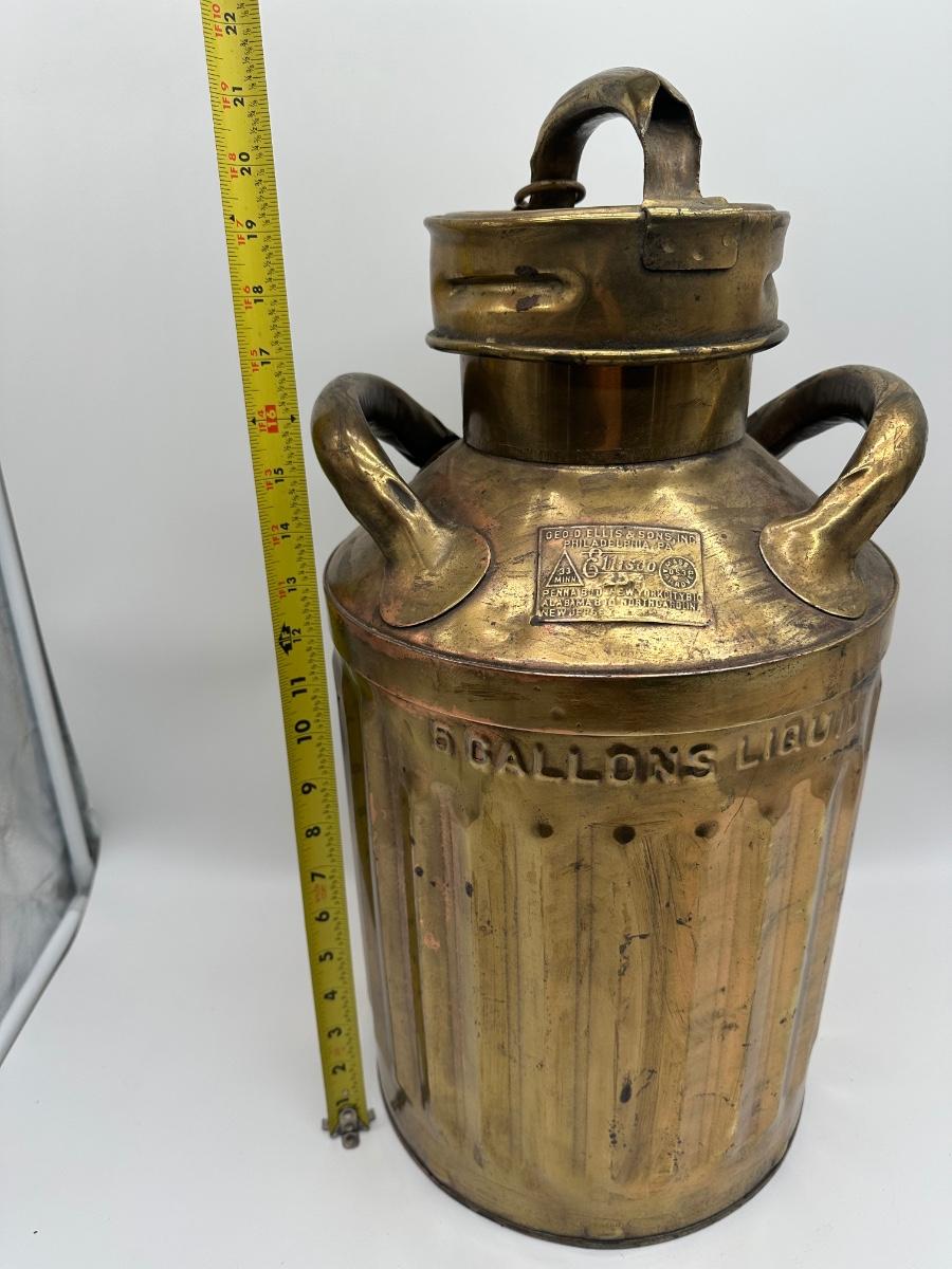 Antique Geo. D. Ellis & Sons Brass Milk Can – 5 Gallon – Philadelphia
