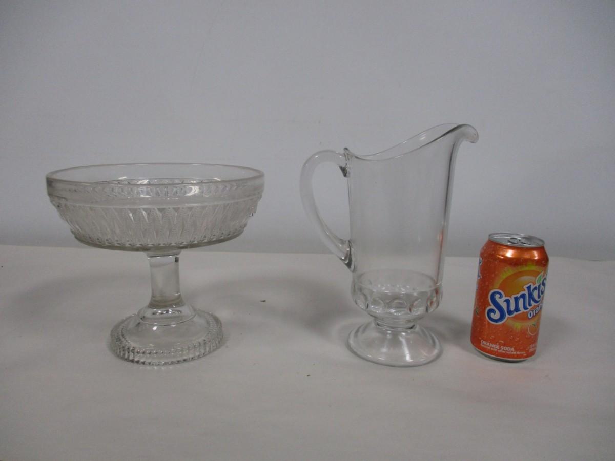 Antique George Duncan & Sons Clear Pressed Glass & Antique Pitcher