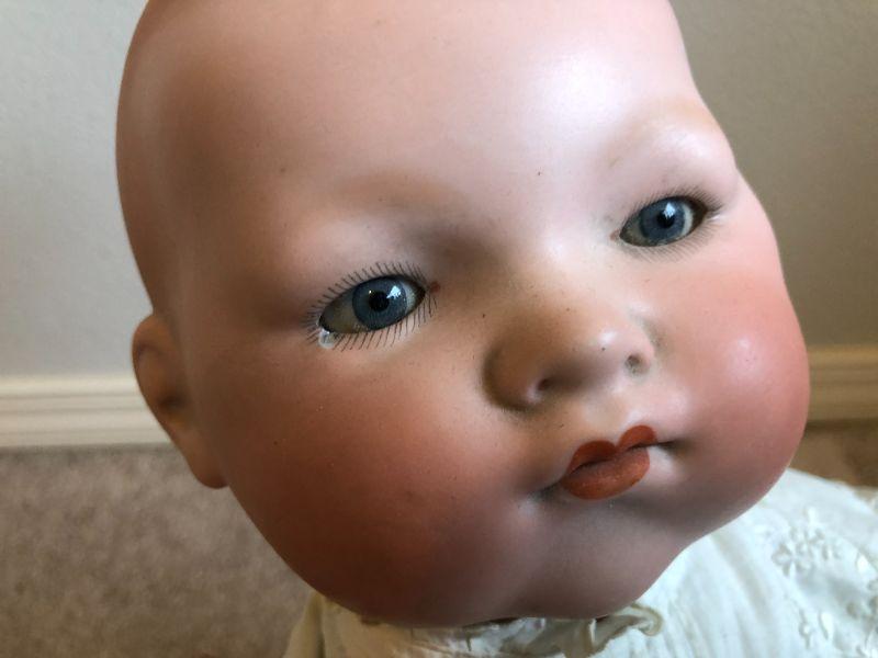 Antique German A.M. Armand Marseille Baby Doll in Original Clothing Dress and Bonnet