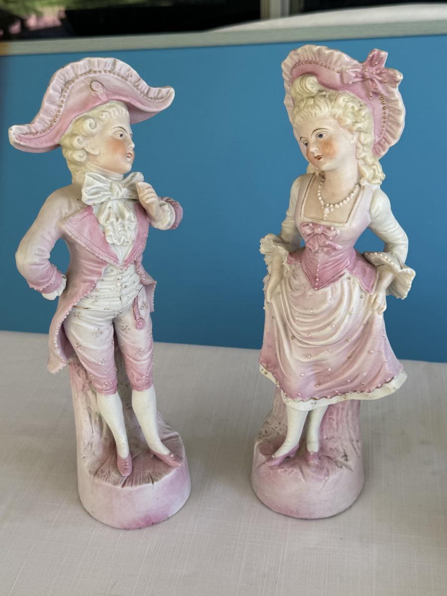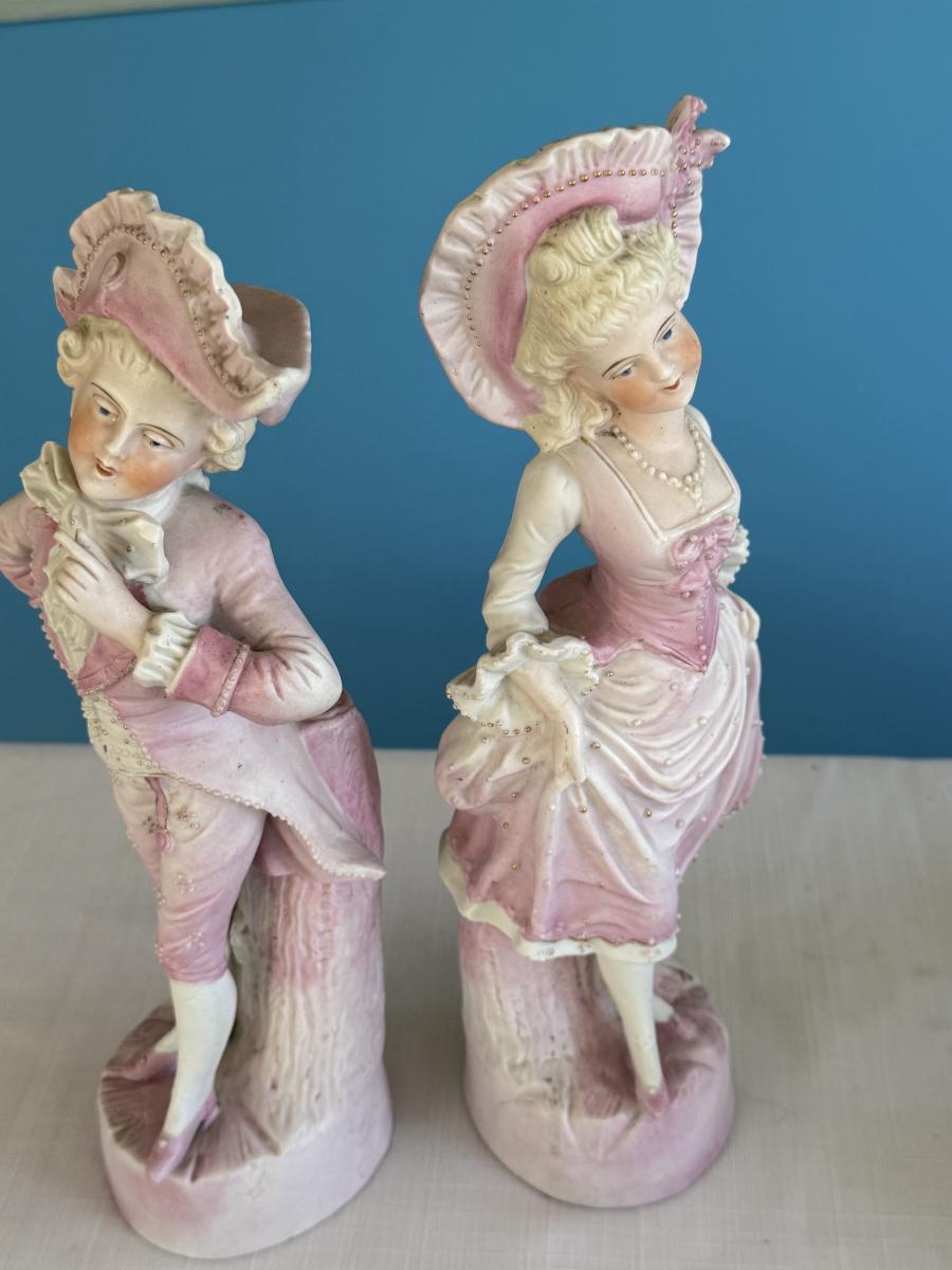 Antique German Bisque figurines 12” likely from late 1800 & likely Germany.