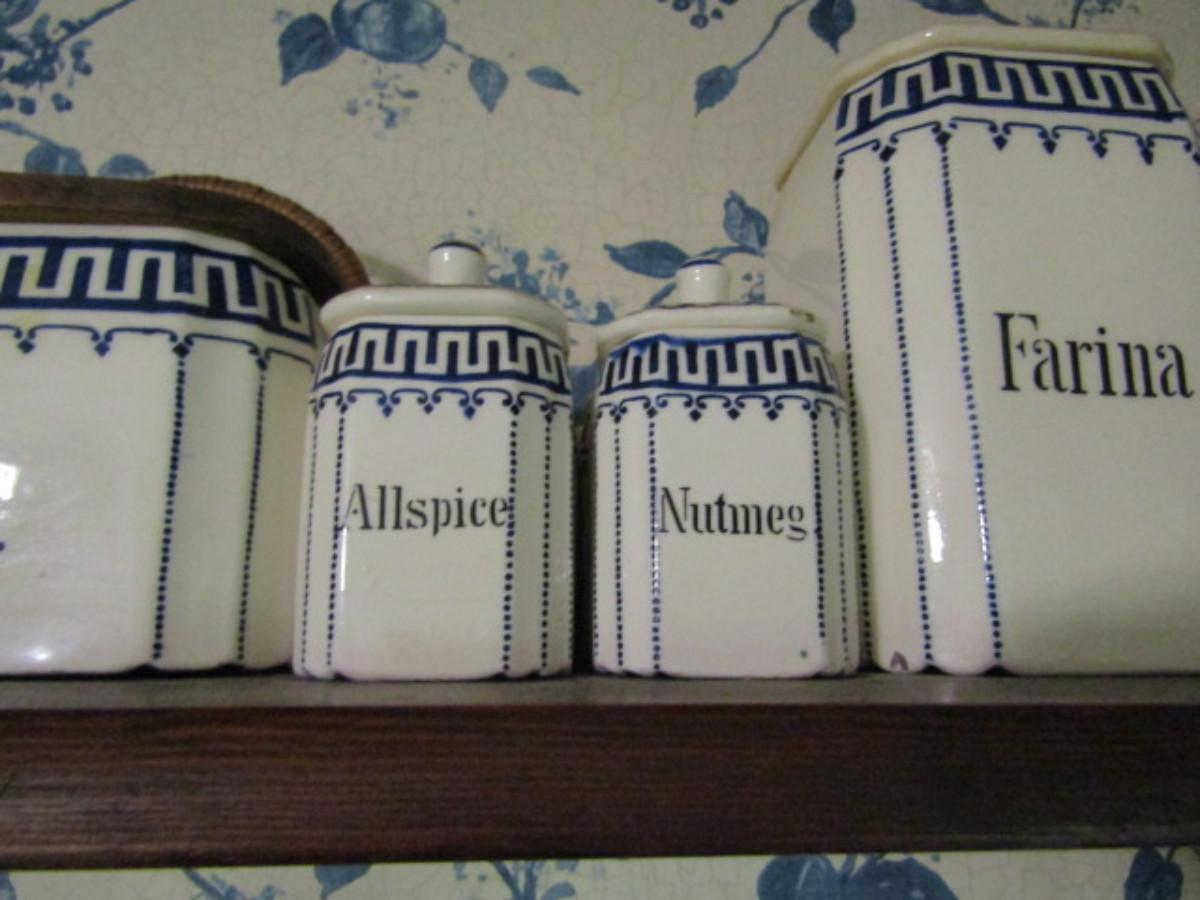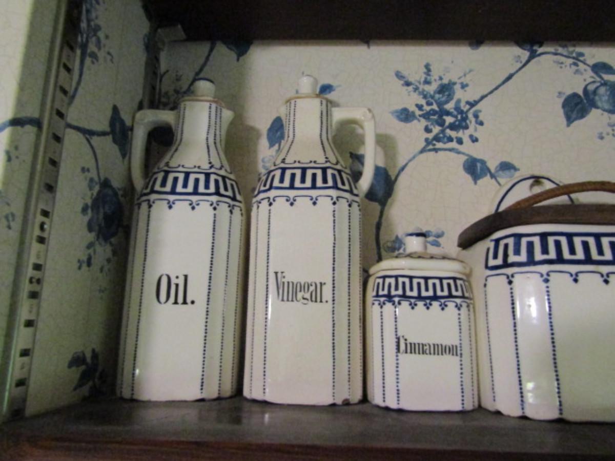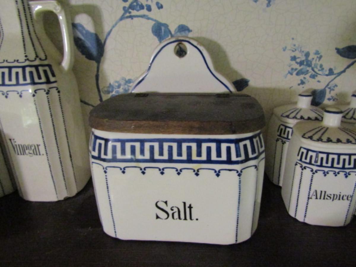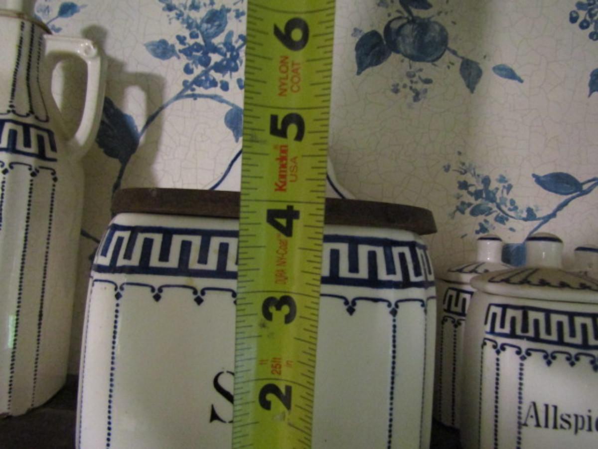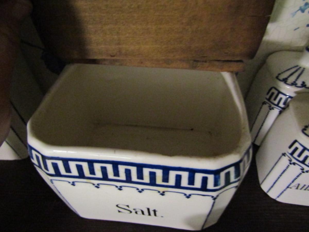 Antique German Canister Set with Spice Jars, Salt Cellar, and Cruets