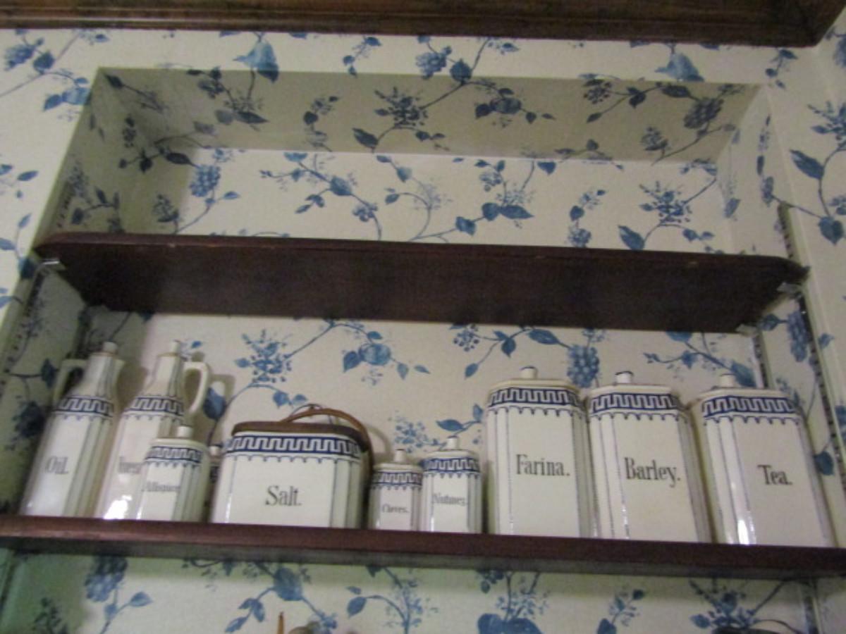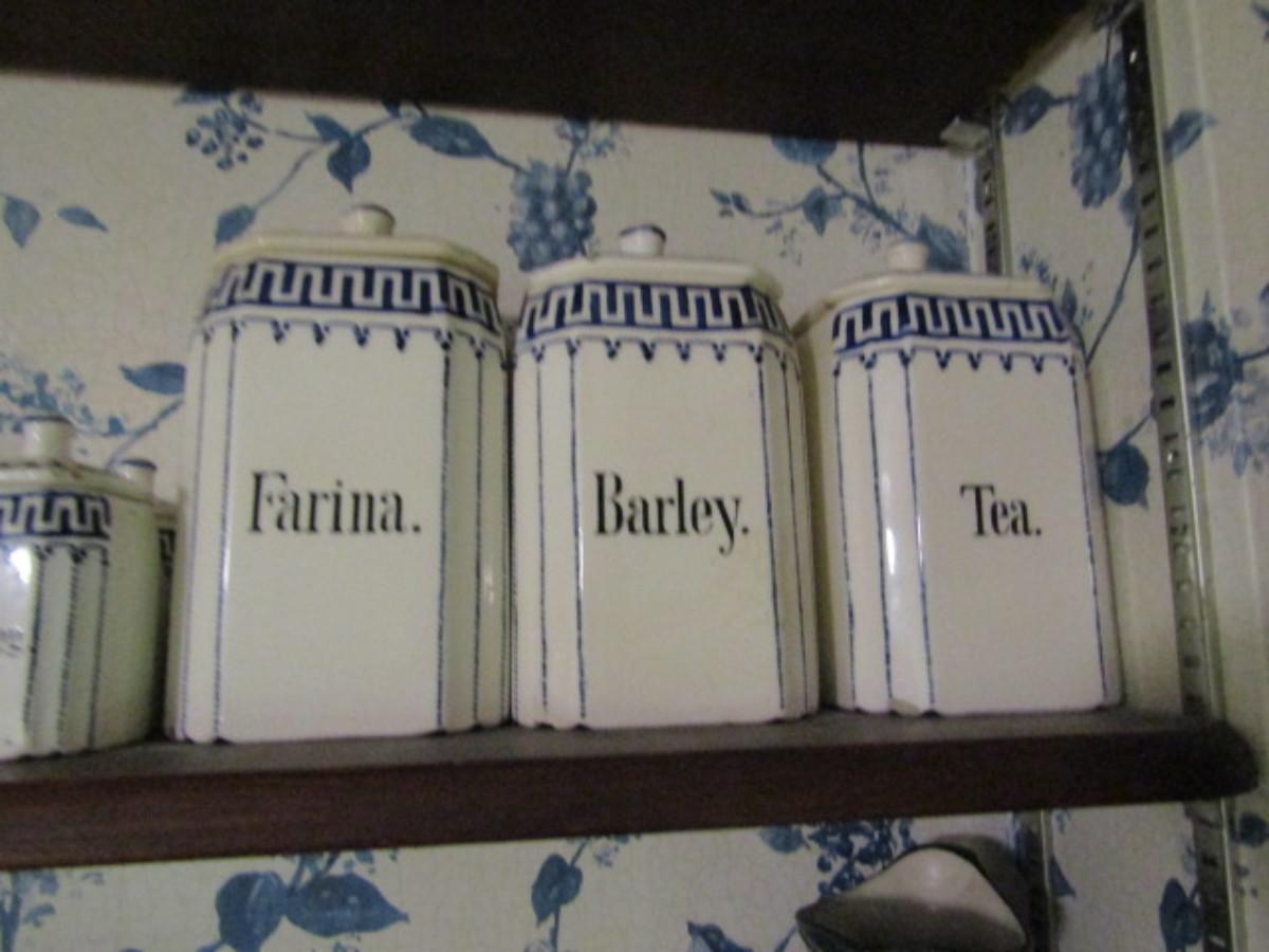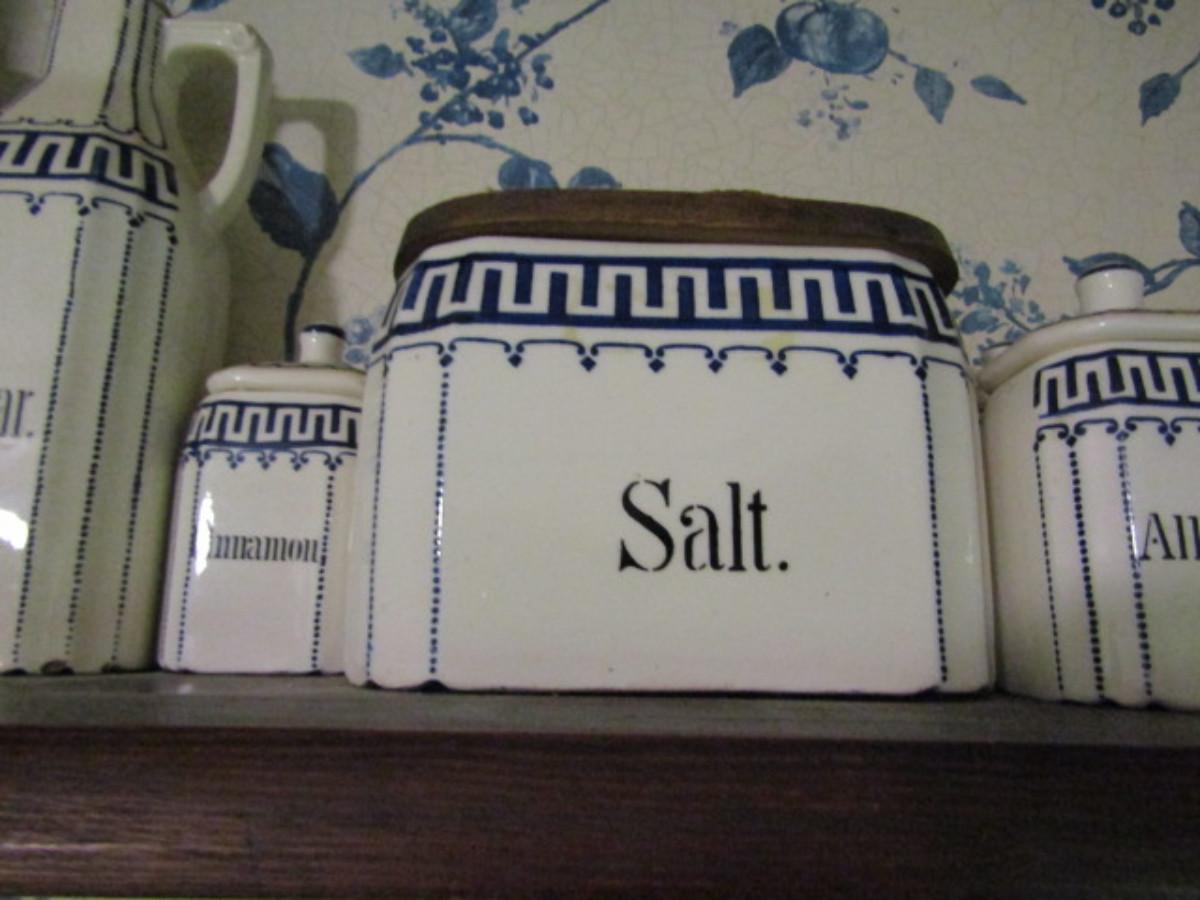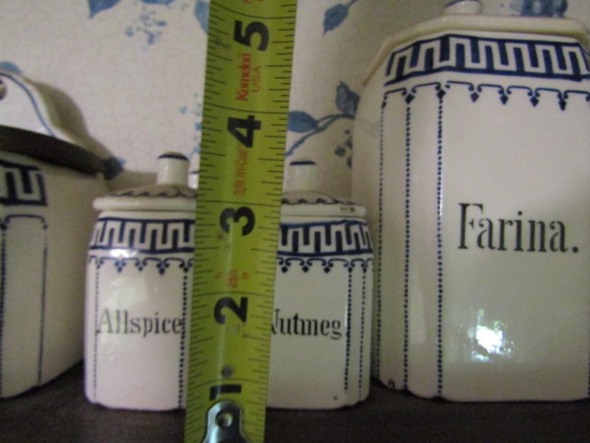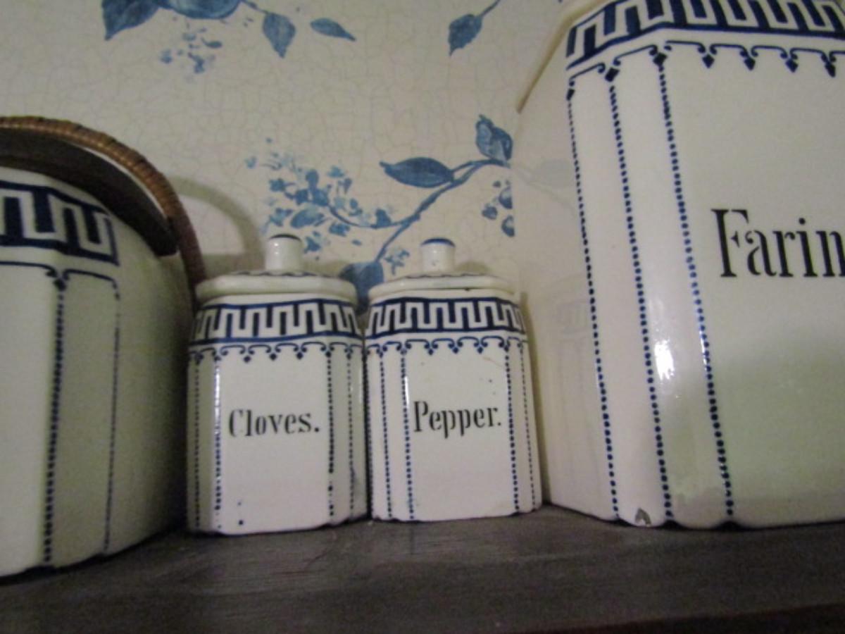 Antique German Canister Set with Spice Jars, Salt Cellar, and Cruets