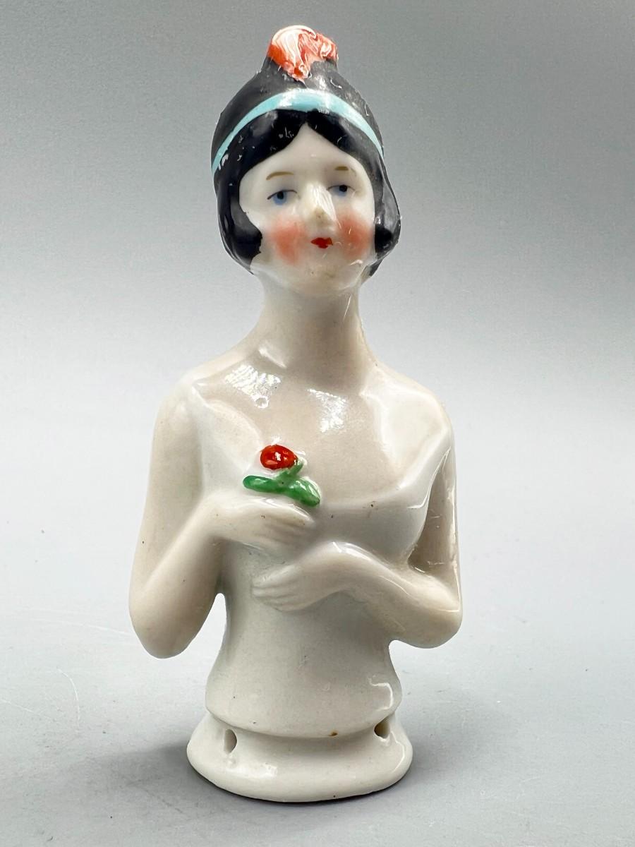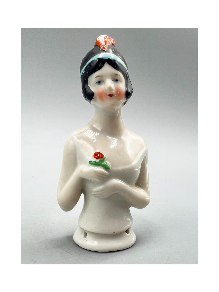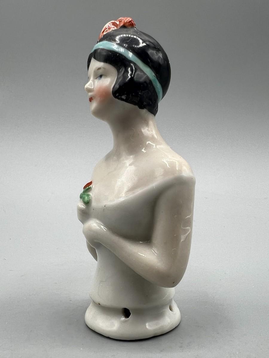 Antique German Half Doll Pincushion Art Deco Flapper Porcelain Figurine