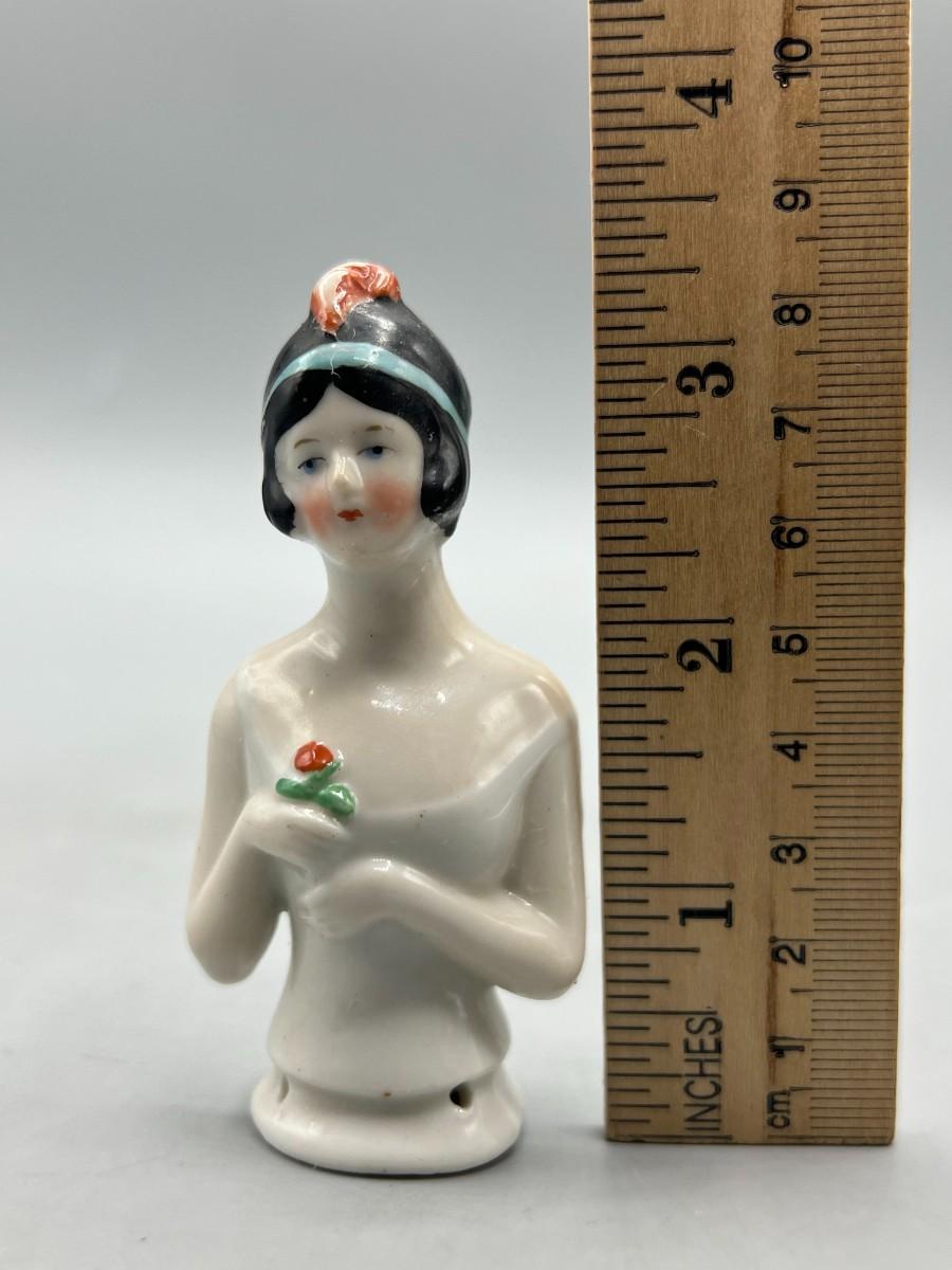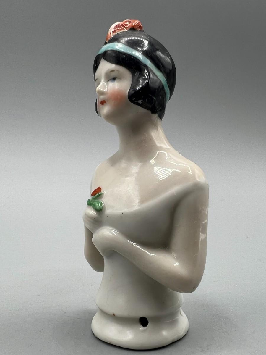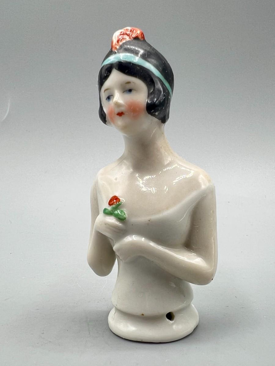 Antique German Half Doll Pincushion Art Deco Flapper Porcelain Figurine