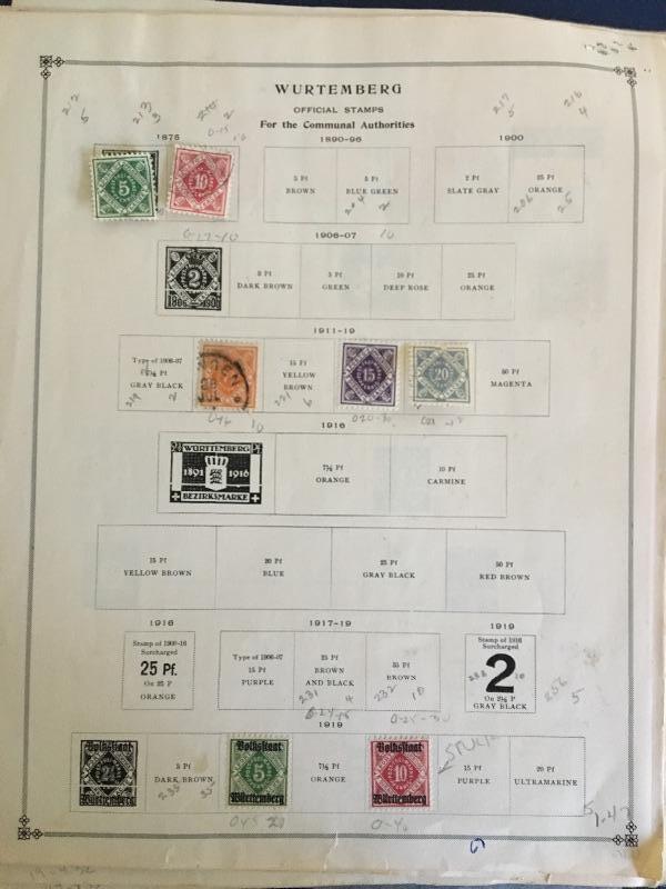 Antique German Hinged Stamp Collection with Bavaria, Danzig, Wurttemberg and more...