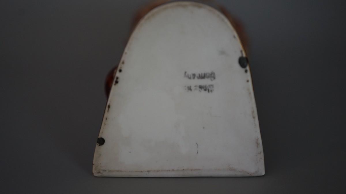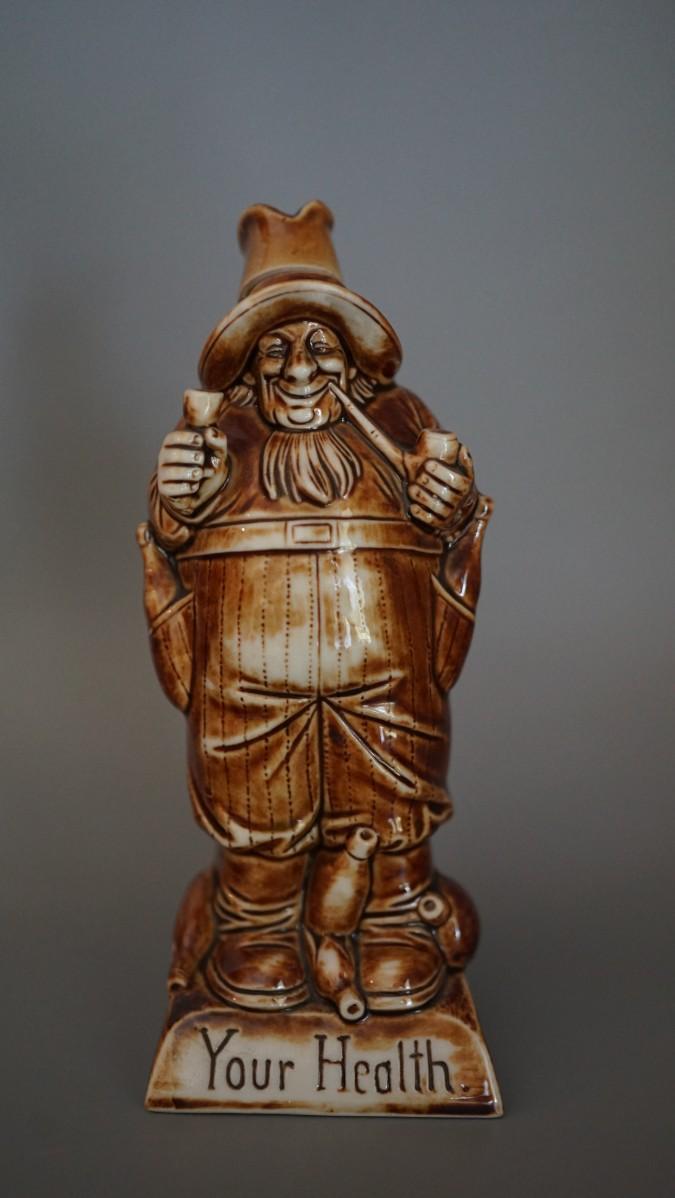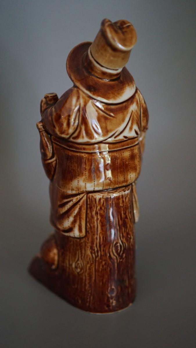 ANTIQUE GERMAN PORCELAIN BROWN GLAZED CHARACTER LIQUOR FLASK OF 6 1/2"