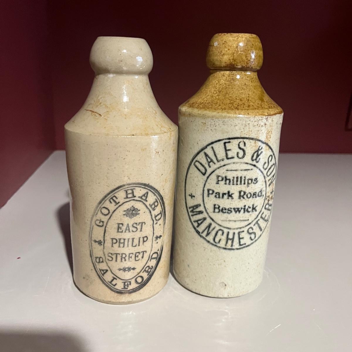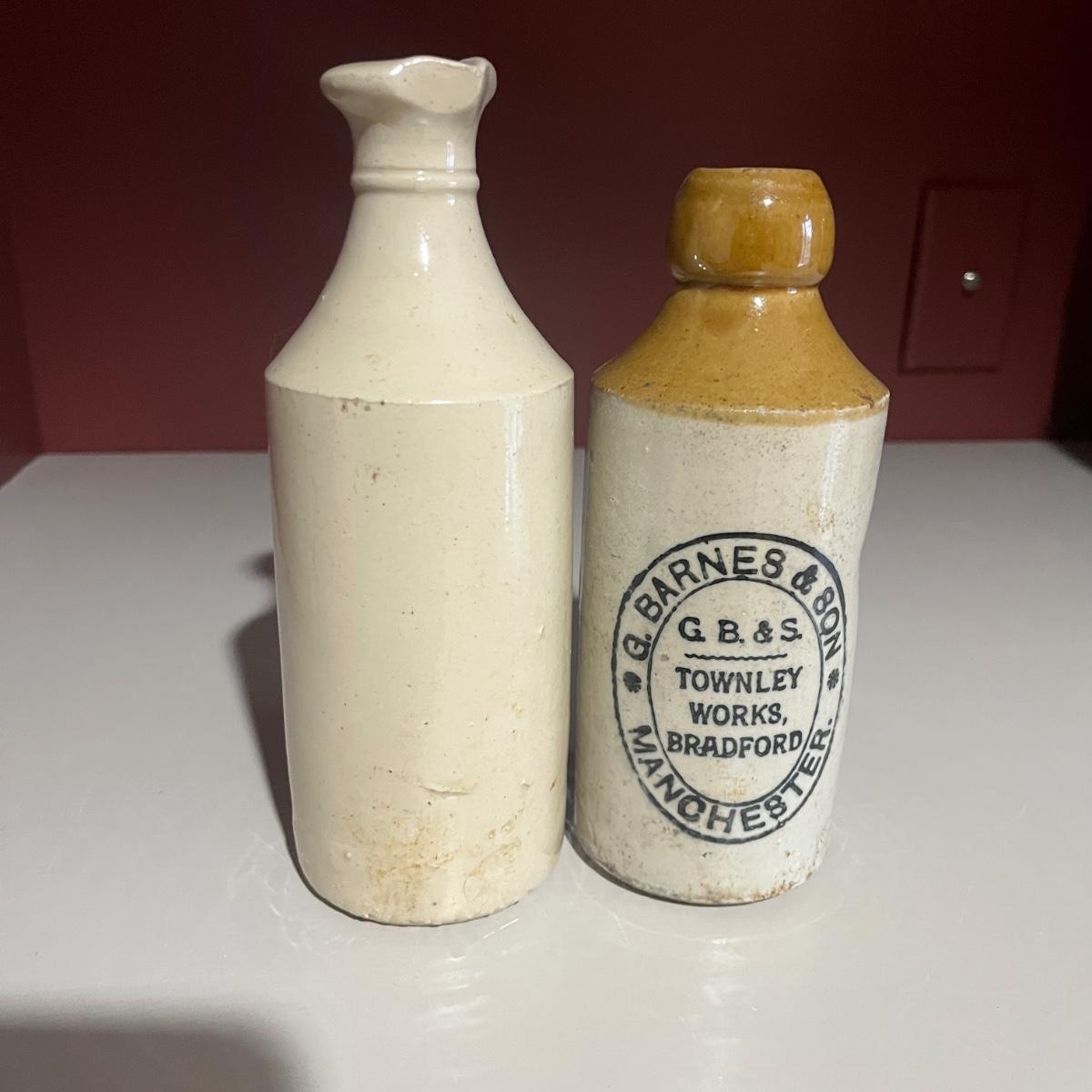 Antique Ginger Beer Stoneware Crockery Bottles (2LR-MG)