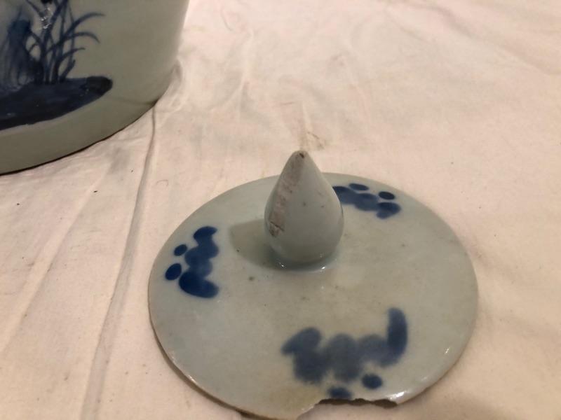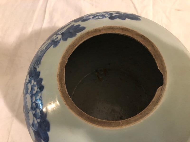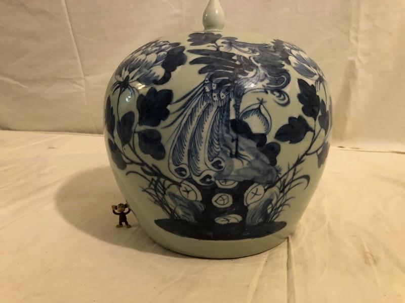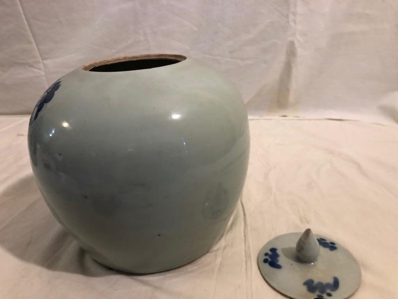 Old porcelain ginger jar with lid 9in tall to tip of lid