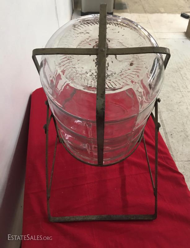 Antique Glass 5 Gallon Jar Jug w/ Metal Pour Stand.