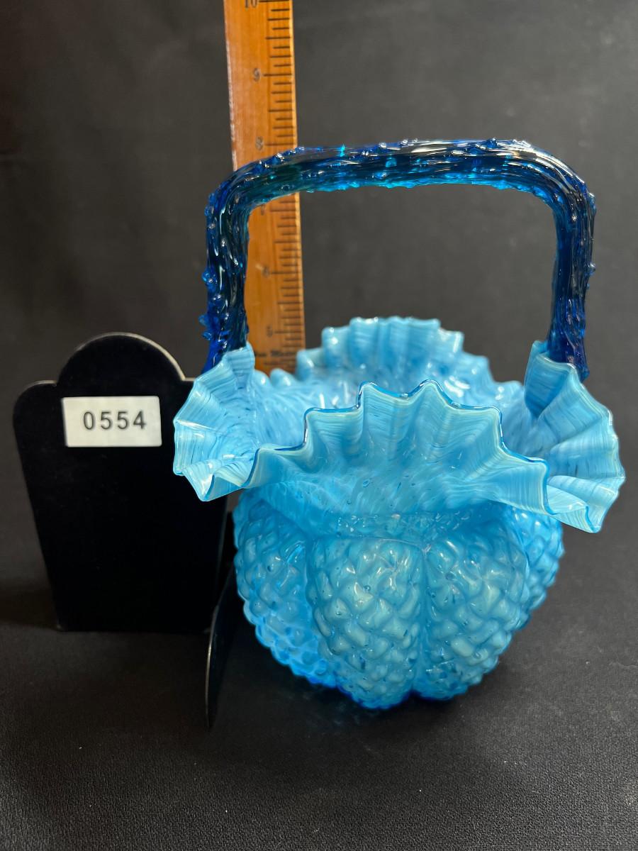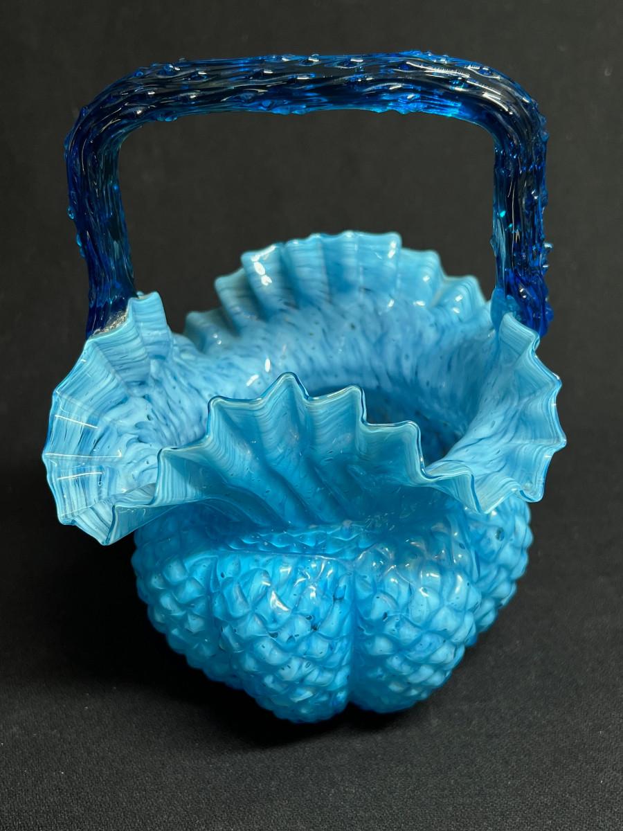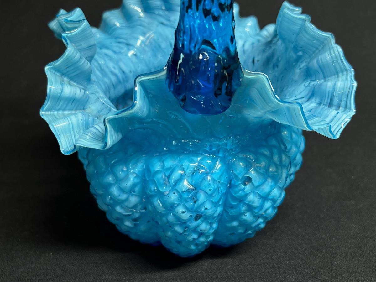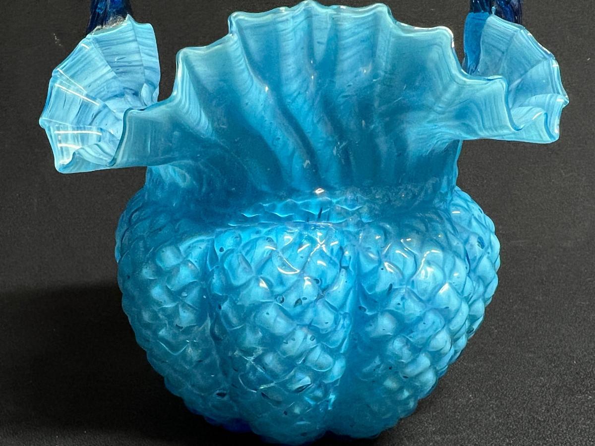 Antique Glass Basket Frilled Edge Fluted Puff Applied Thorn Handle