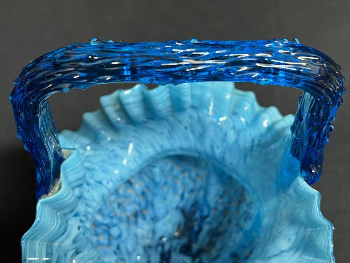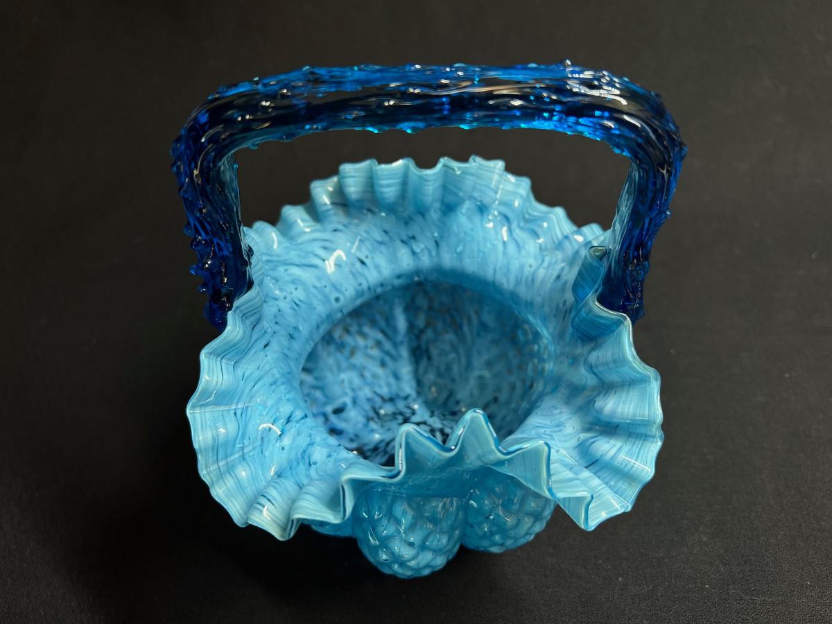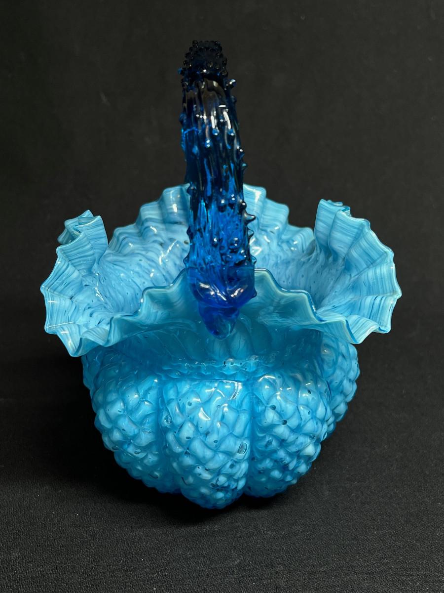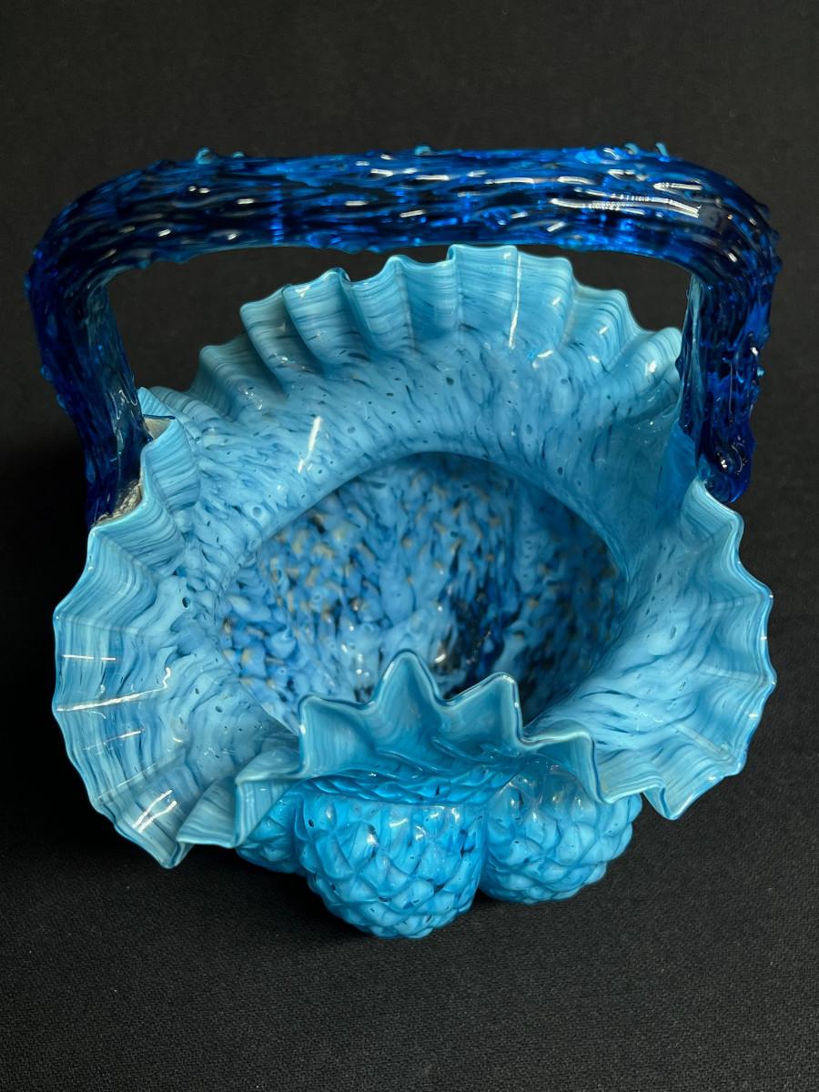 Intricate Antique Glass Basket Frilled Edge Fluted Puff Applied Thorn Handle