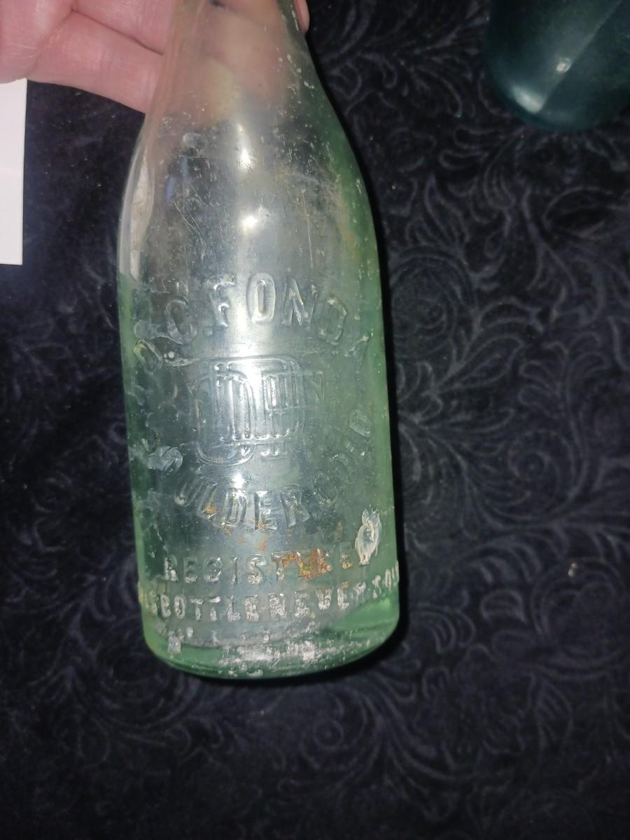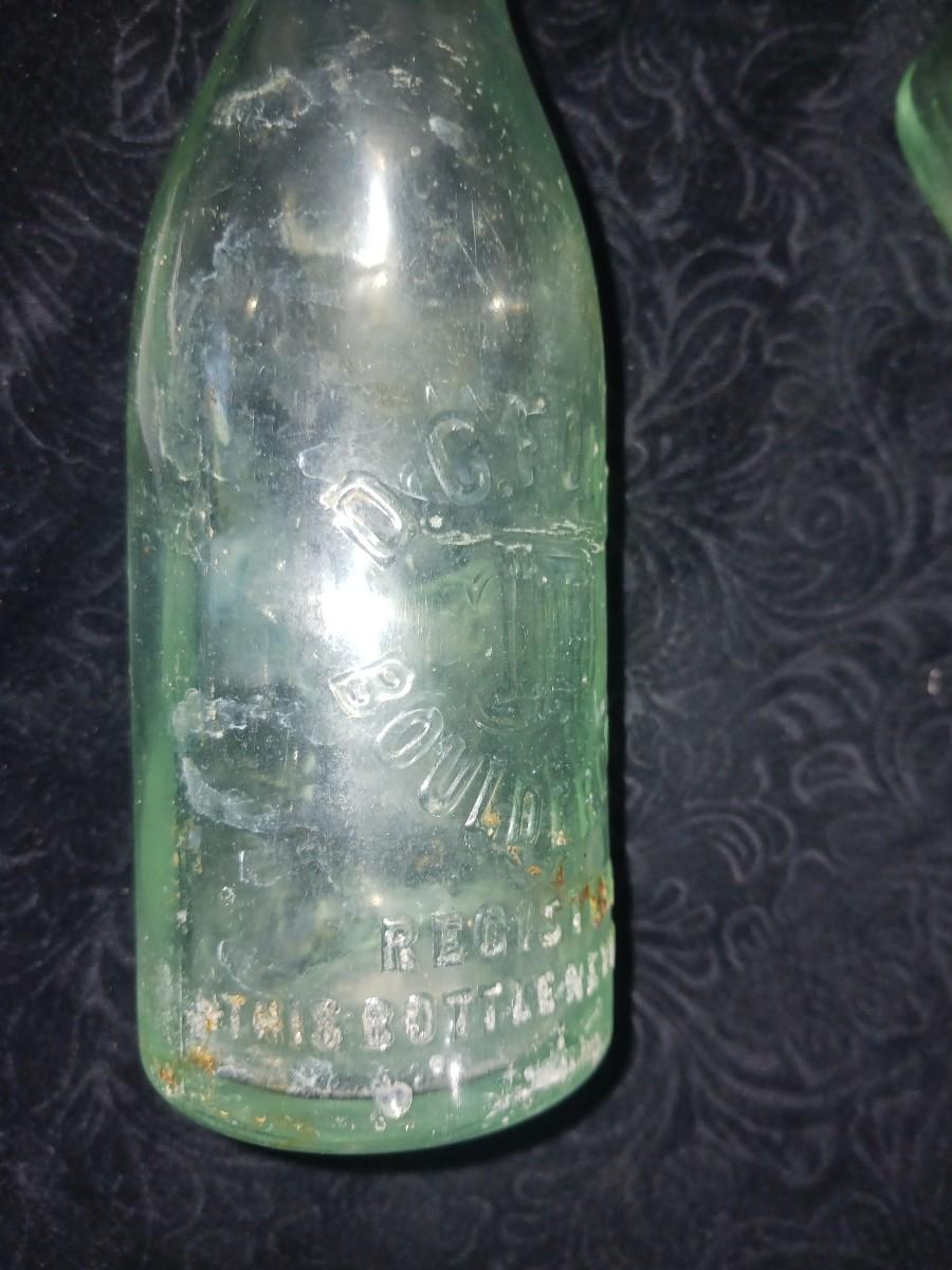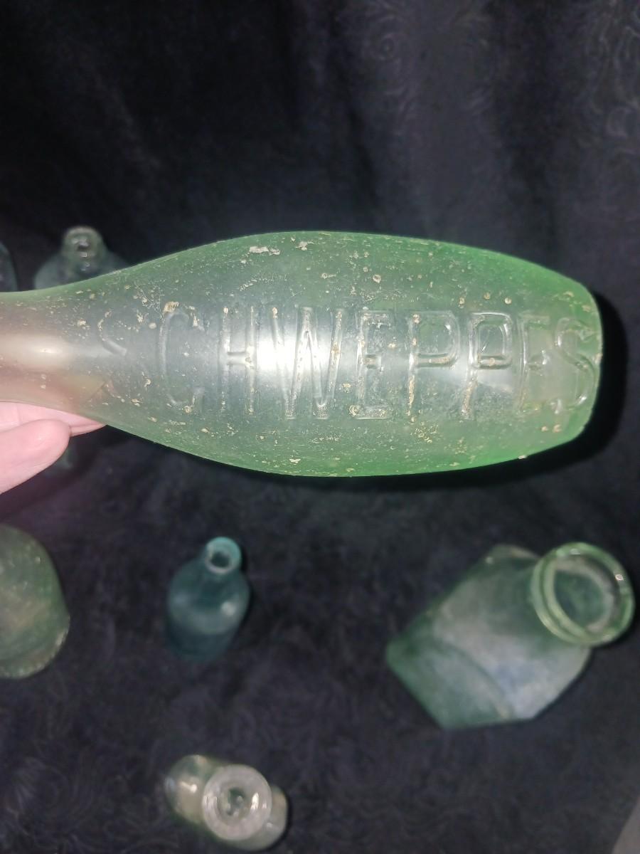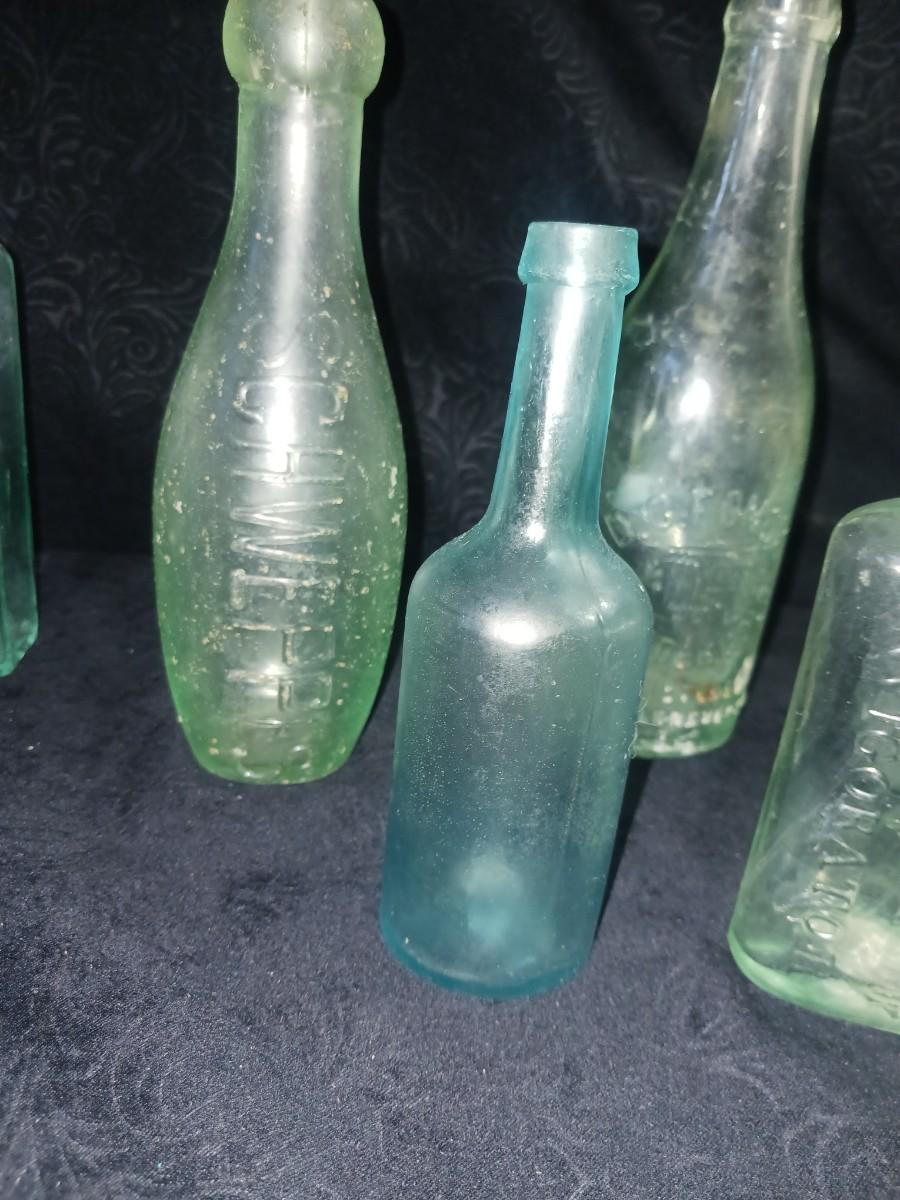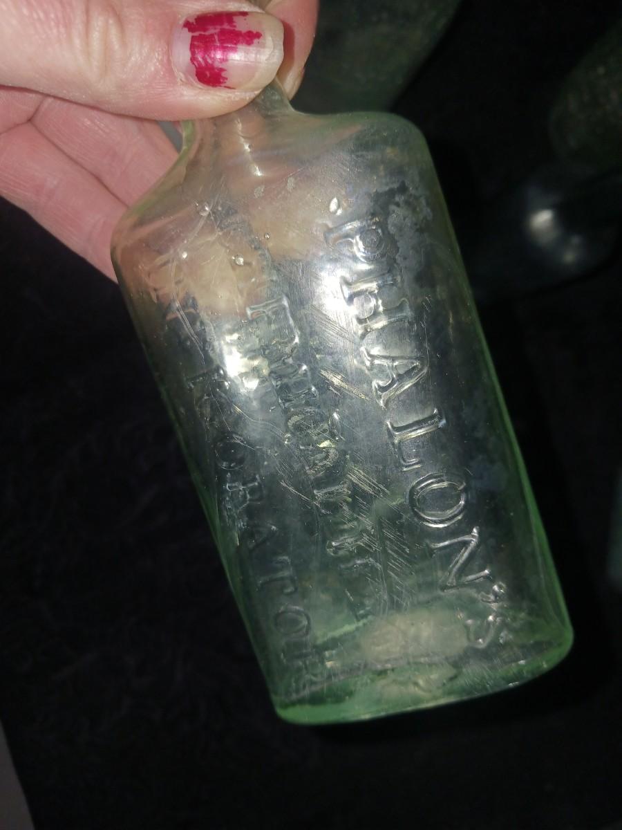 ANTIQUE GLASS BOTTLES WITH RAISED LETTERING