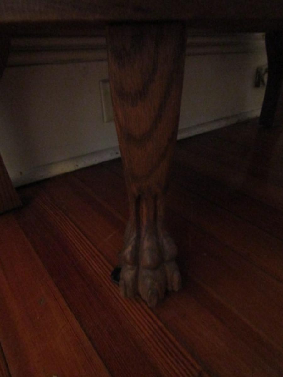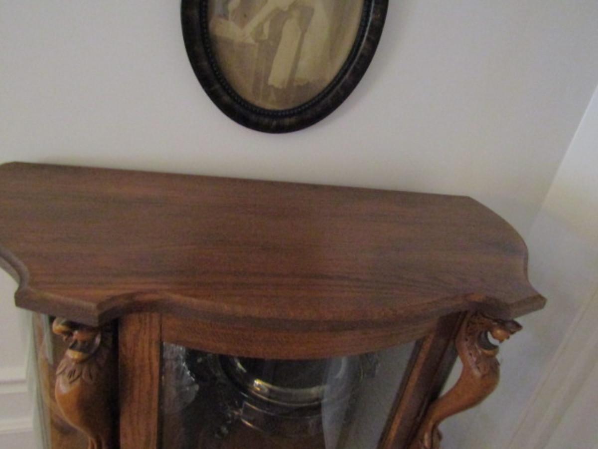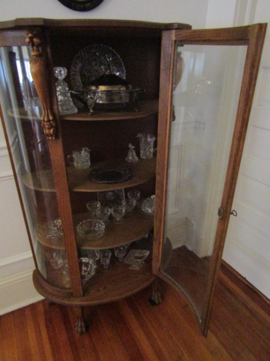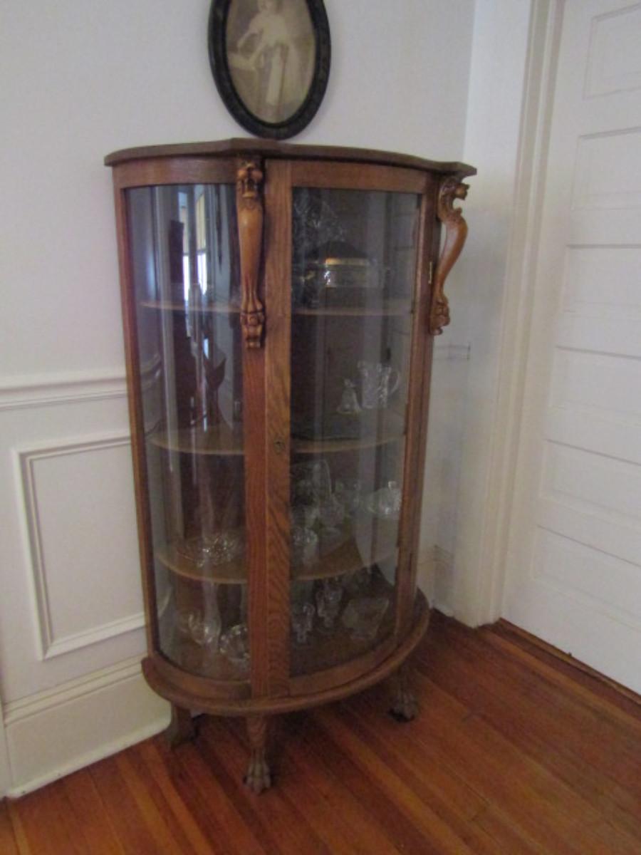 Antique Glass Bow Front Curio Cabinet with Paw Feet and Lion Accents (No Contents)