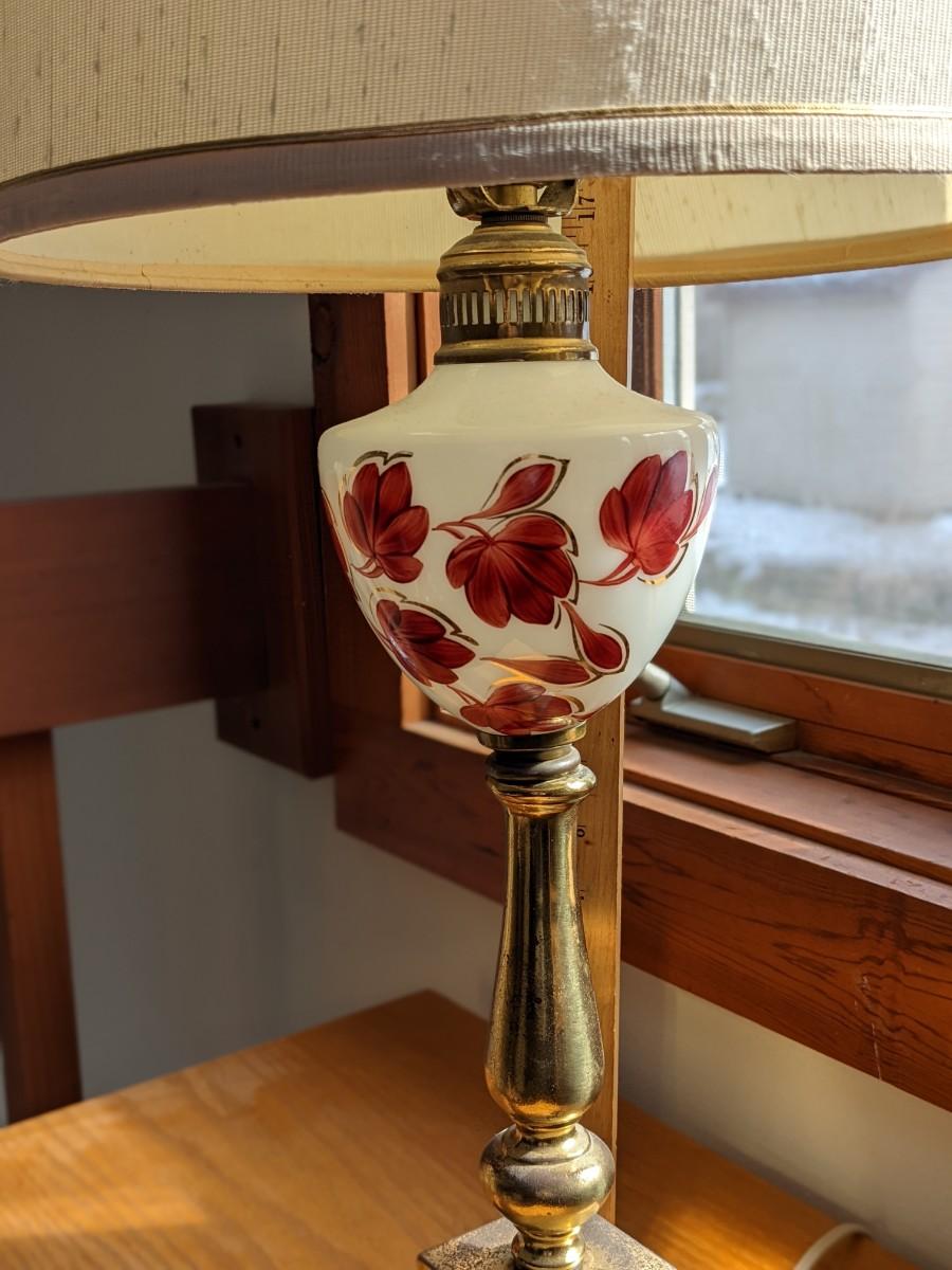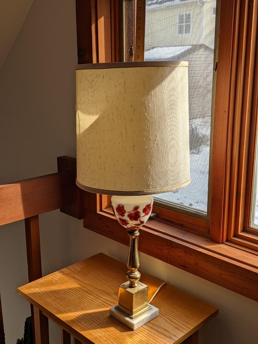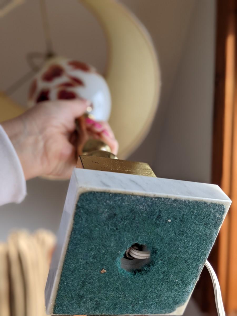 Antique Glass, Brass, Marble Base Table Lamp. Very Nice Condition