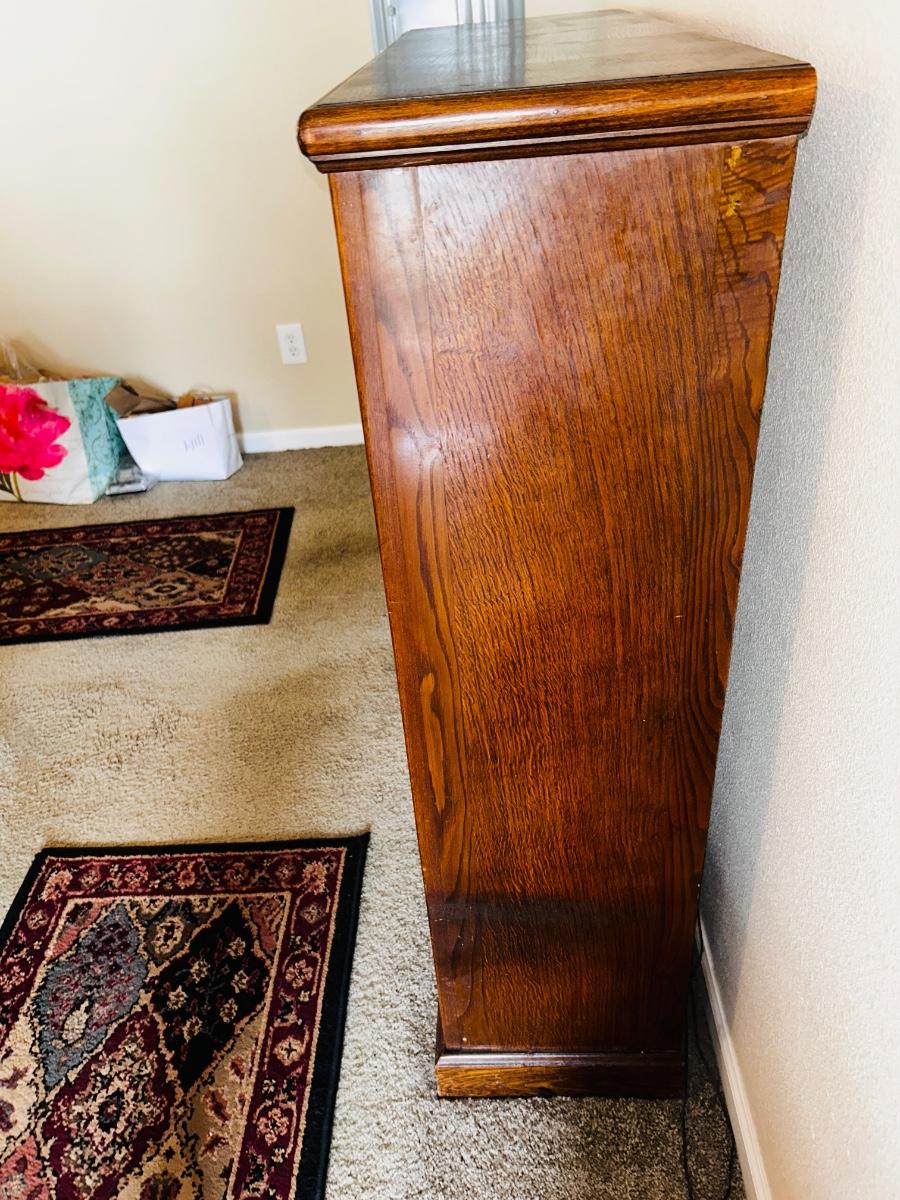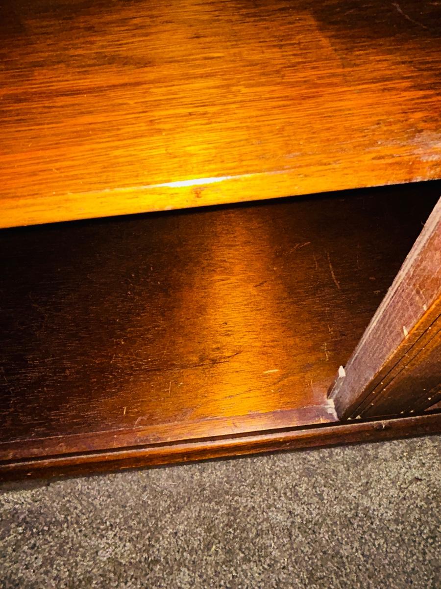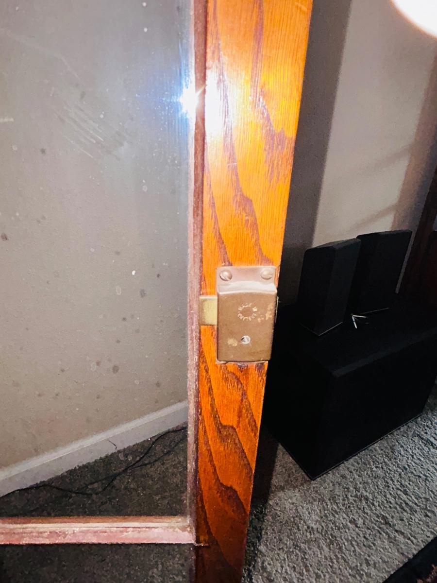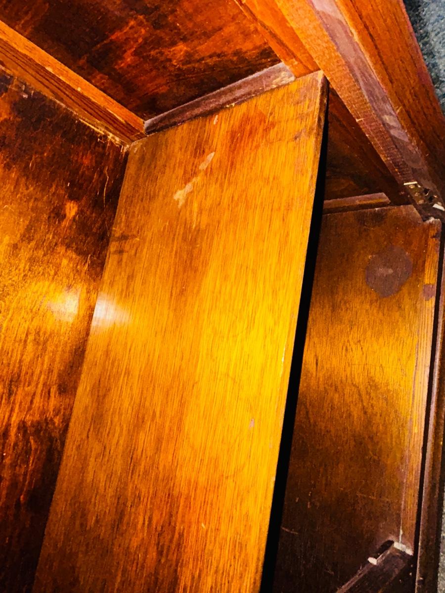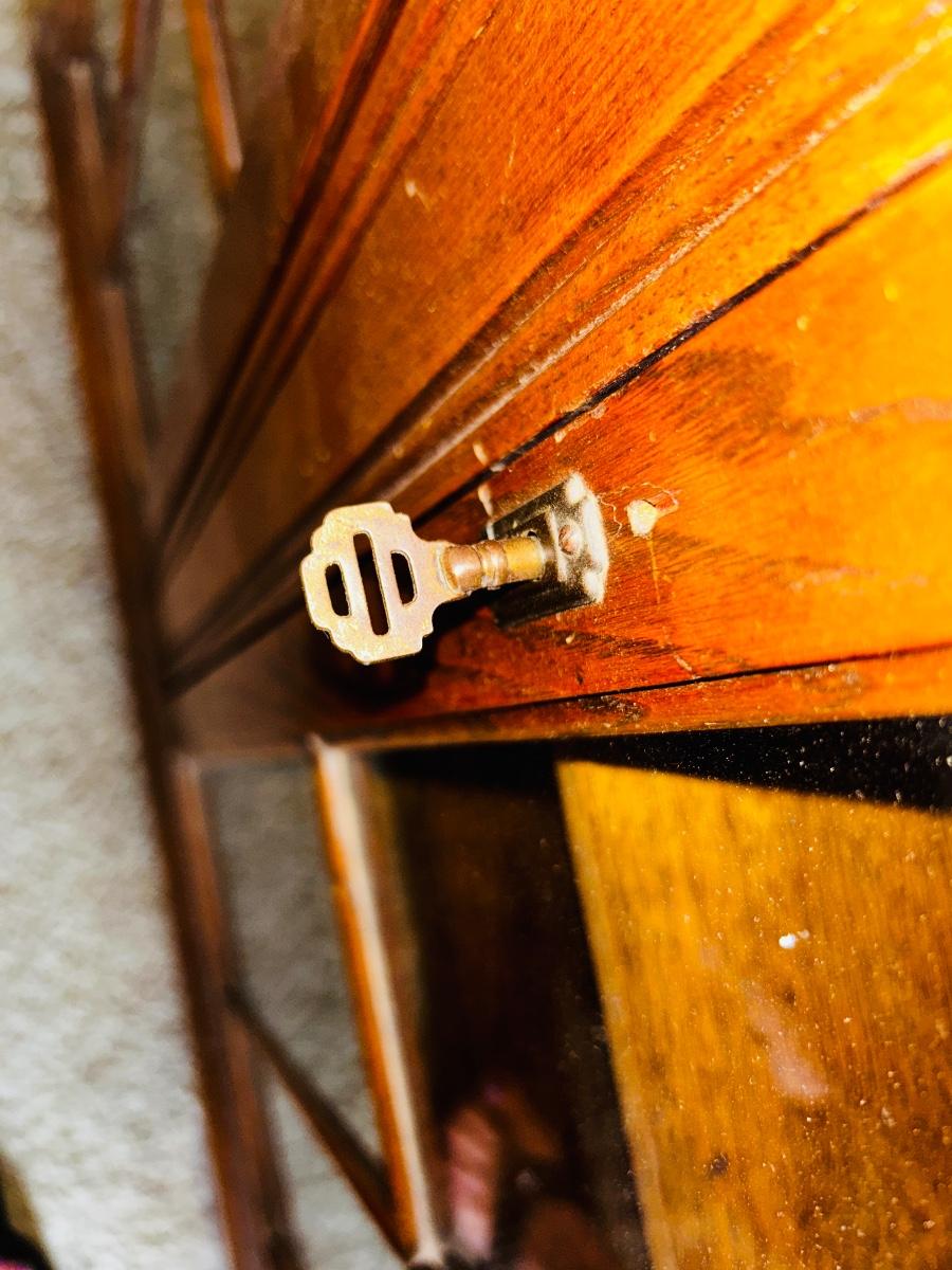 ANTIQUE GLASS DOUBLE DOOR SKELETON KEY LOCKING CABINET