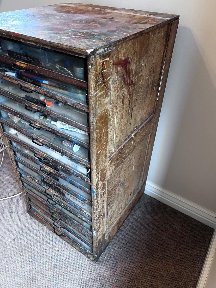 Very cool antique glass front notions cabinet or store cabinet, nice patina of age. 20x19x39" tall Please bring moving help.
