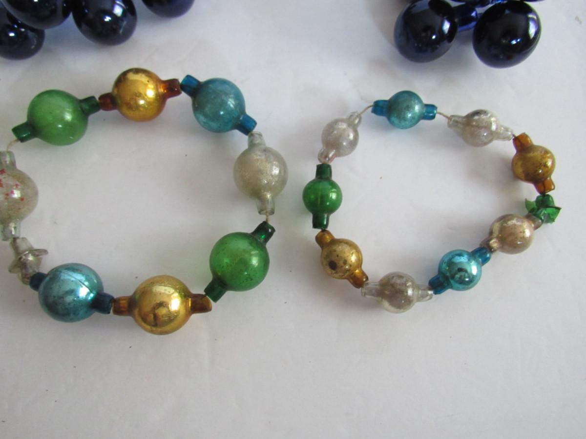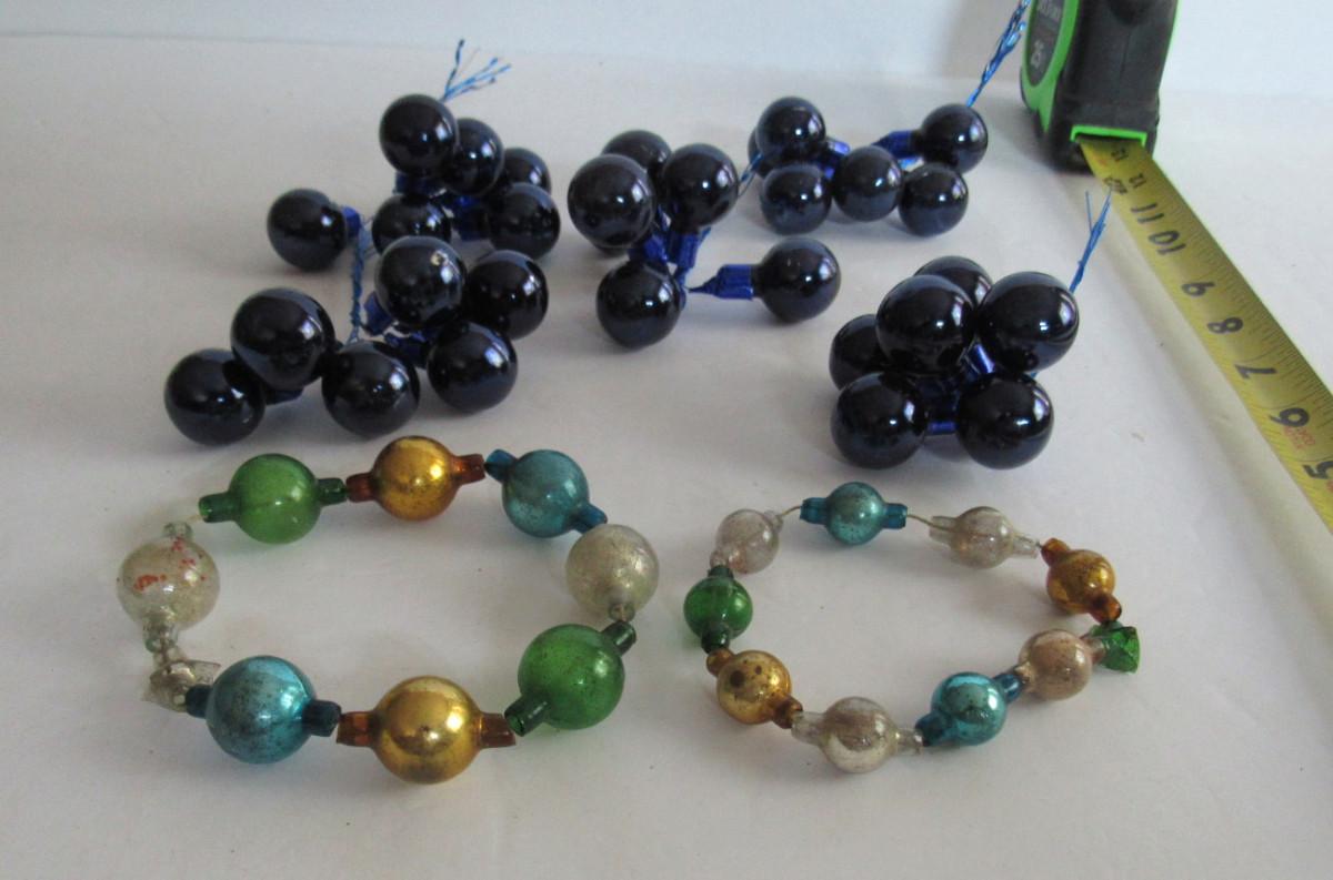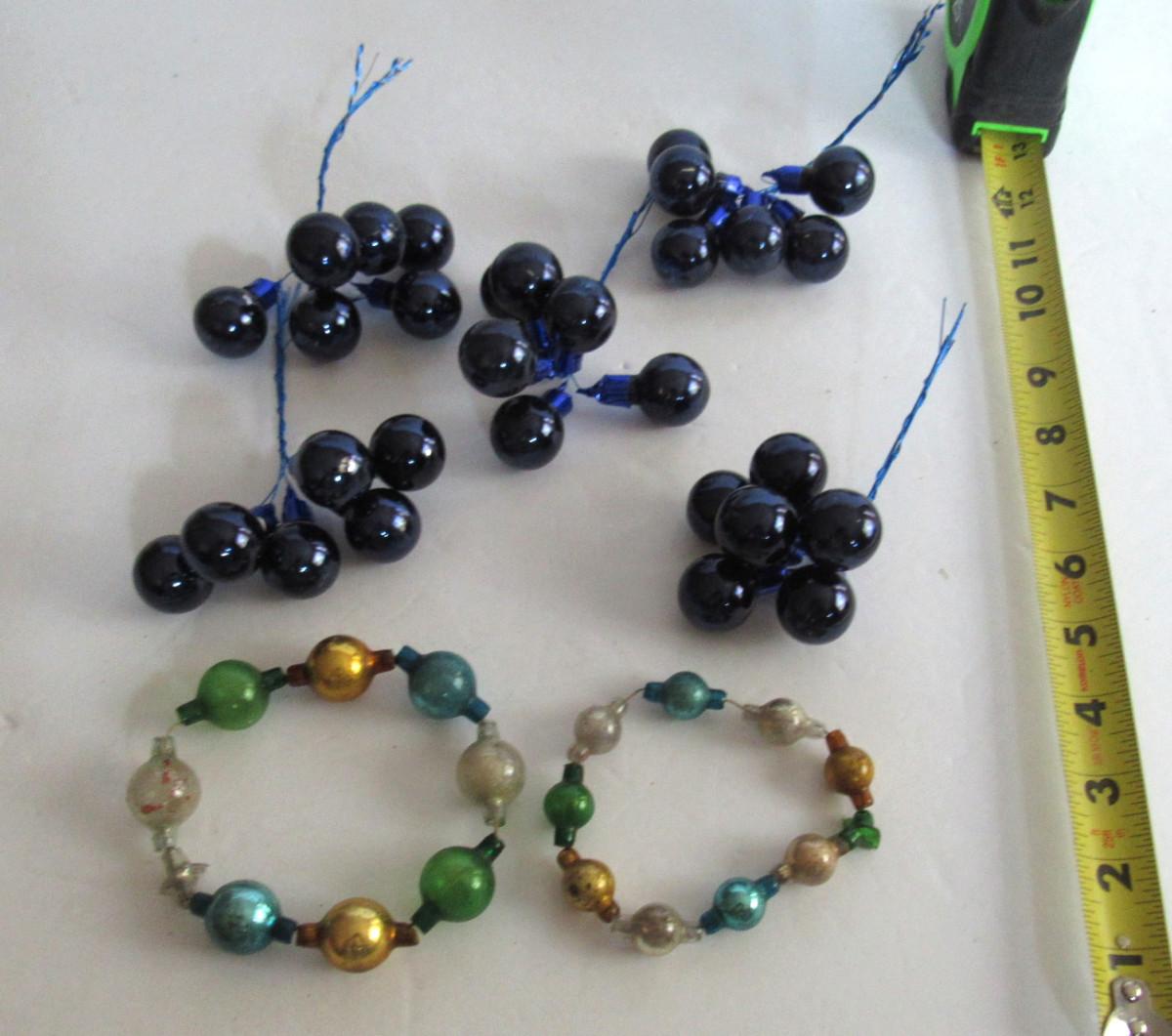 Antique Glass Garland Ornaments and Glass Floral Picks in Bunches